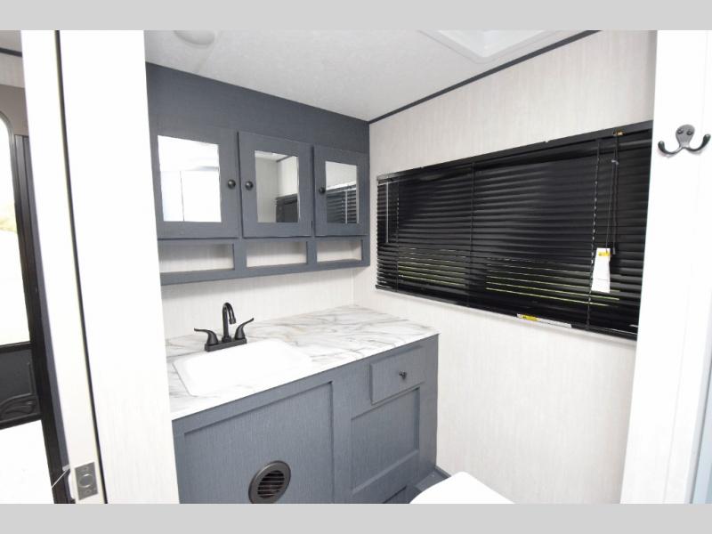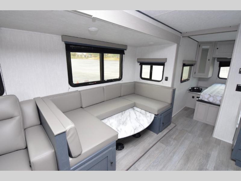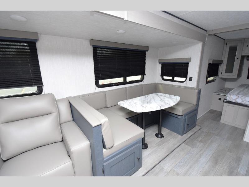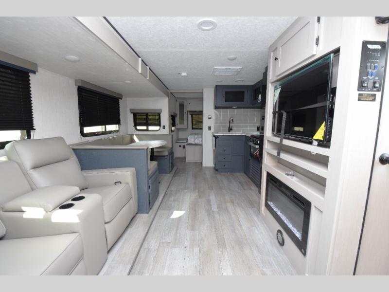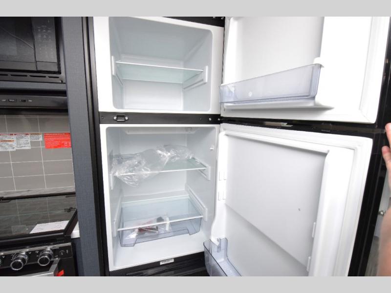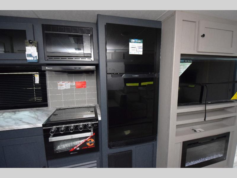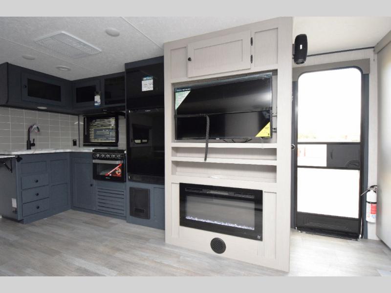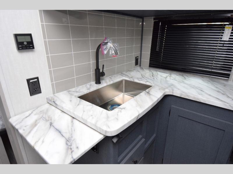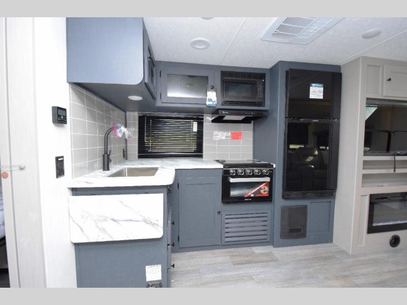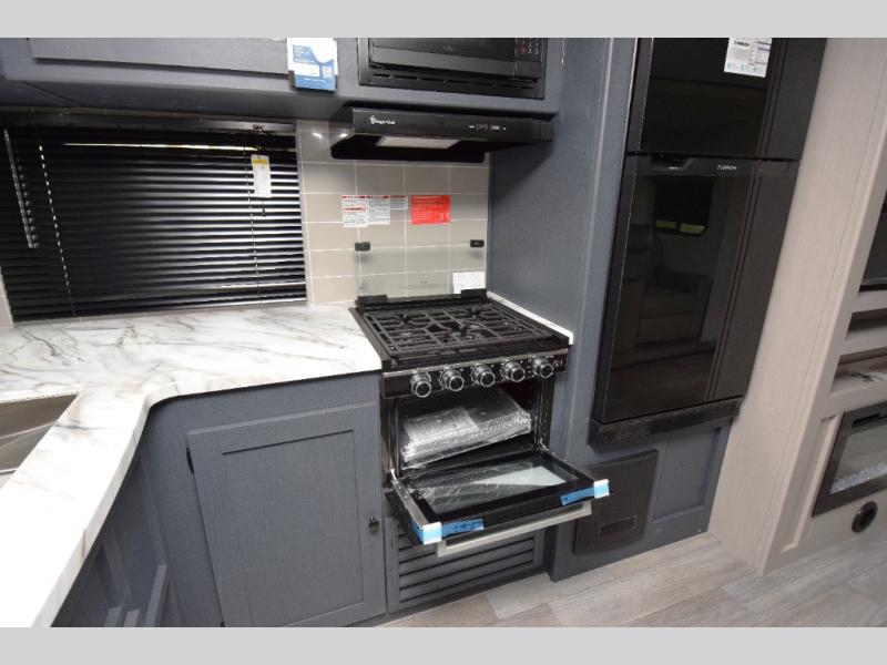 - Stylish Interior: Enjoy a modern aesthetic with one-piece seamless edge countertops, hard valances with night shades, matte black hardware, and elegant Casino Bisque cabinetry.