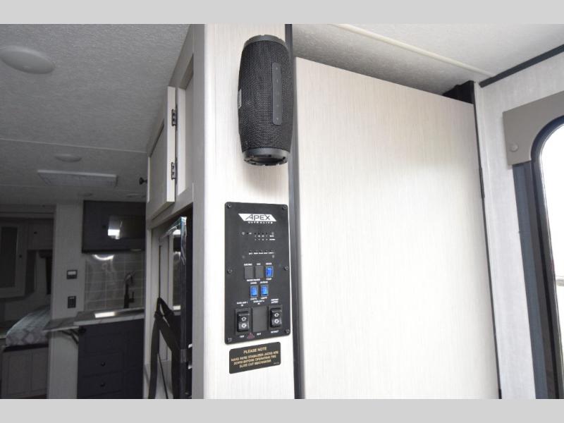 - Lightweight Design: The Apex Ultra-Lite travel trailers are eco-friendly and built to last, featuring Azdel composite sidewalls, a laminated aluminum floor, and a vacuum-bonded crowned roof.