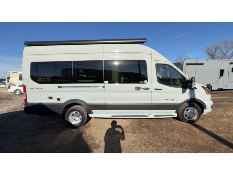 The Beyond Class B gas motorhomes by Coachmen are packed full of stylish and convenient features to meet your adventurous lifestyle. You will love how easy it will be to drive with the Supersprings International suspension kit, the ten speed transmission, and the added safety features, like the blind spot assist and forward collision warning. The ABS insulated rear doors will provide more protection during the colder months, plus each model includes a Truma Combi Eco Plus furnace/water heater for maximum efficiency. An upgraded Wi-Fi Ranger SkyPro means you can stay connected to the outside world as you travel, and the Firefly multiplex system includes dual screens to control your coach's functions with ease. Inside, you'll find hardwood cabinetry, a one-piece fiberglass shower, a rear pull-down screen and rear window covers, and two contemporary decor choices to fit your style.