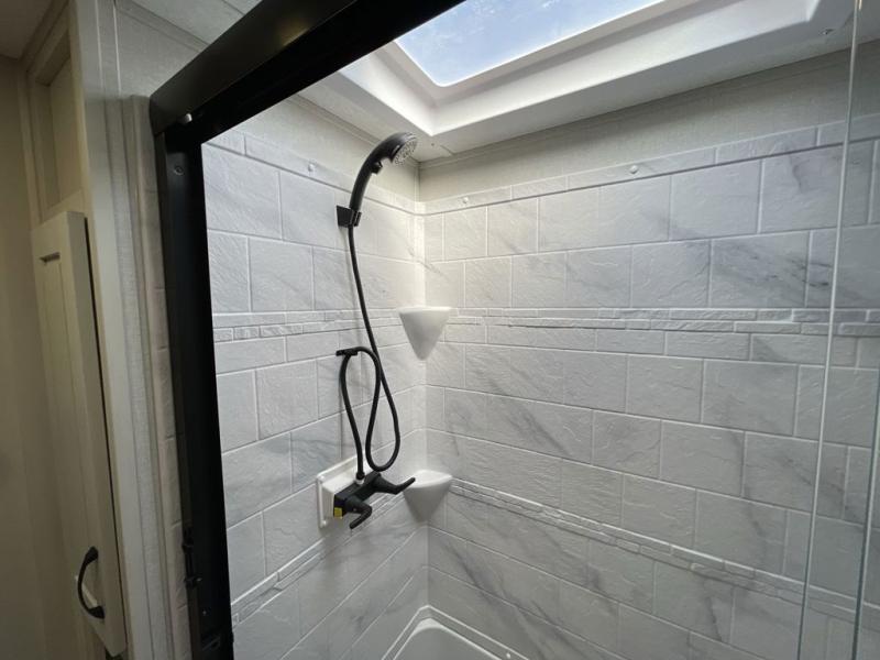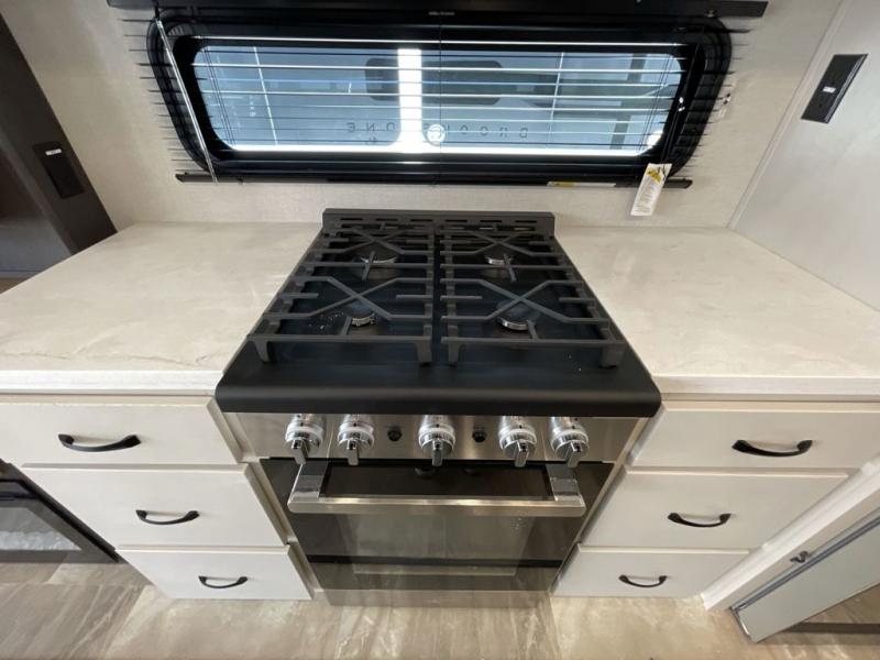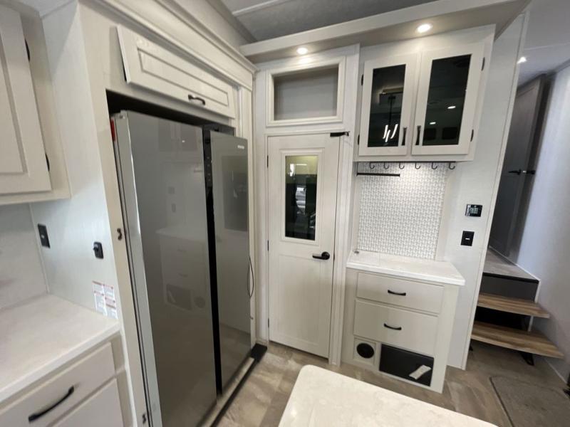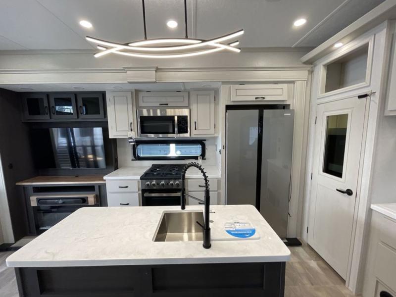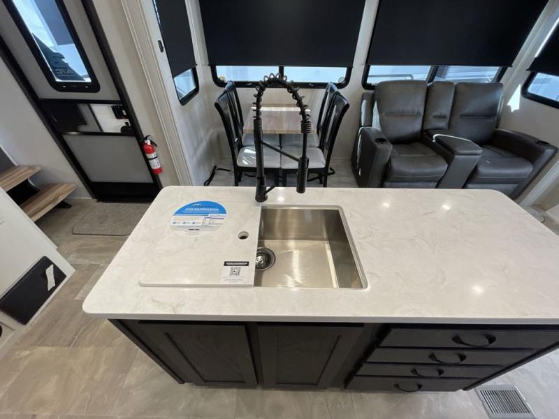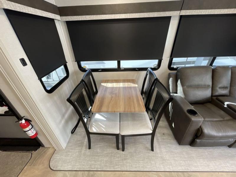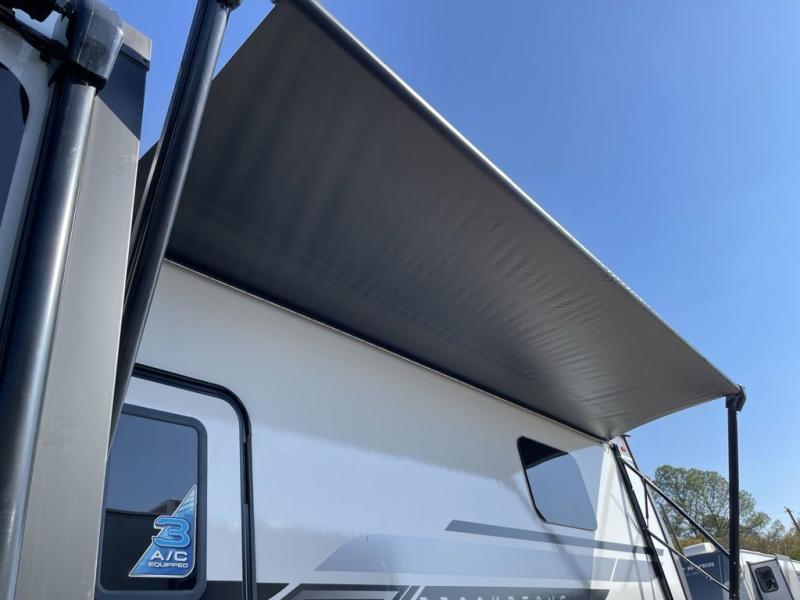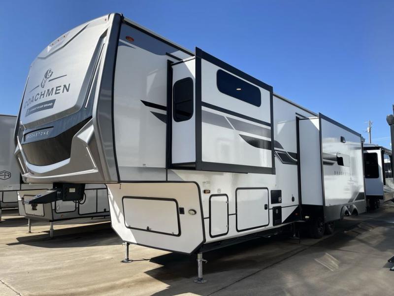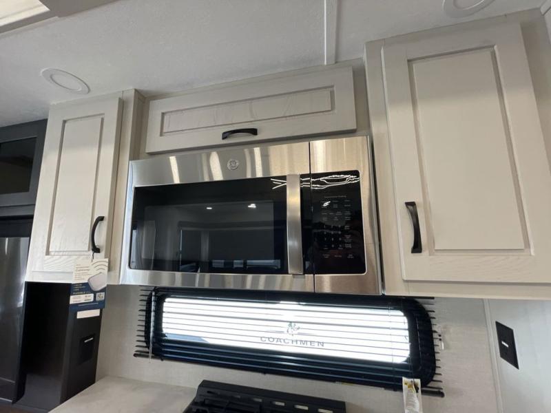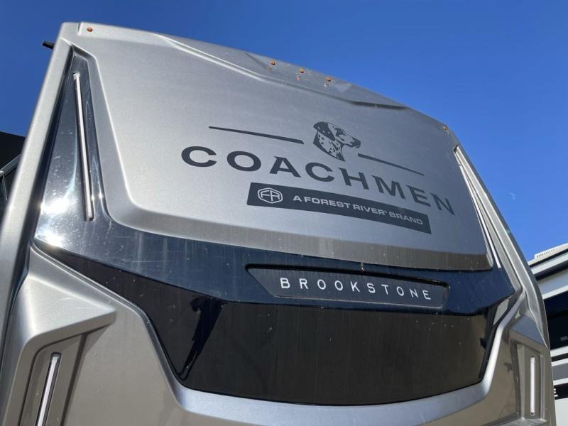 The Brookstone fifth wheels by Coachmen are coming to you with wide-body comfort, home-like amenities, and unique designs for a truly luxurious RV. The Weather Shield+ consists of a 6X double Azdel aluminum cage sidewall system, a Radiant Pro weather barrier system, and more that will help you extend your camping season or go full-time. Head inside to find solid surface countertops in the kitchen, an 4K Smart LED TV in the living room, slow rise roller night shades, and the list of comforts goes on! The Brookstone also includes 6-point electric auto-leveling, four Solid Step entry steps, an electric awning with LED lights, and many more exterior conveniences!
