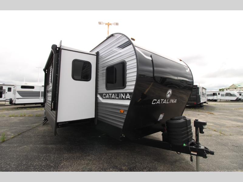 Each Catalina Legacy travel trailer by Coachmen is constructed with a cambered structural steel I-beam frame for added strength and support, plus an enclosed and fully sealed corrugated underbelly to extend your camping season. There is also a seamless Alpha roof membrane, R-7 insulation throughout, full length frame outriggers, plus many more durable construction materials. You will love the 6' 9" interior height, along with Congoleum woodplank linoleum flooring, seamless Thermofoil countertops, and hard valance window treatments. Choose a Catalina Legacy today!