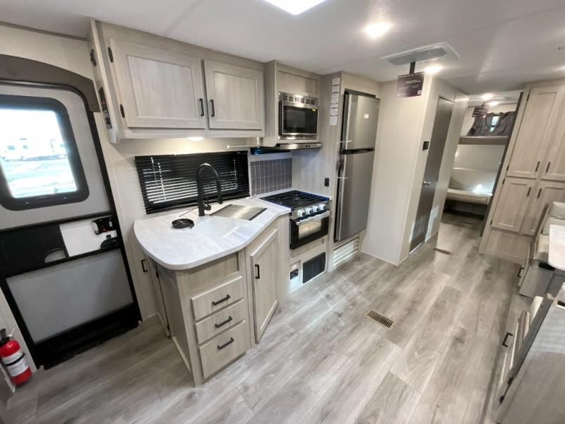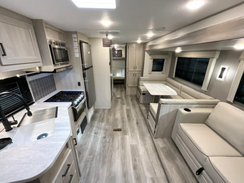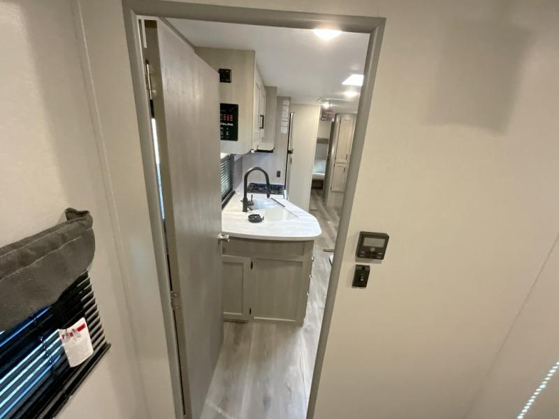 Each Catalina Legacy travel trailer by Coachmen is constructed with a cambered structural steel I-beam frame for added strength and support, plus an enclosed and fully sealed corrugated underbelly to extend your camping season. There is also a seamless Alpha room membrane, R-7 insulation throughout, full length frame outriggers, plus many more durable construction materials. You will love the 6' 9" interior height, along with Congoleum woodplank linoleum flooring, seamless Thermofoil countertops, and hard valance window treatments. There is an RV-Link 4G LTE connectivity with WiFi booster and an extender to keep you connected to the outside world as you camp, and the JBL Aura cube multi-zone function media center is sure to keep you entertained all weekend long. Choose a Catalina Legacy today!