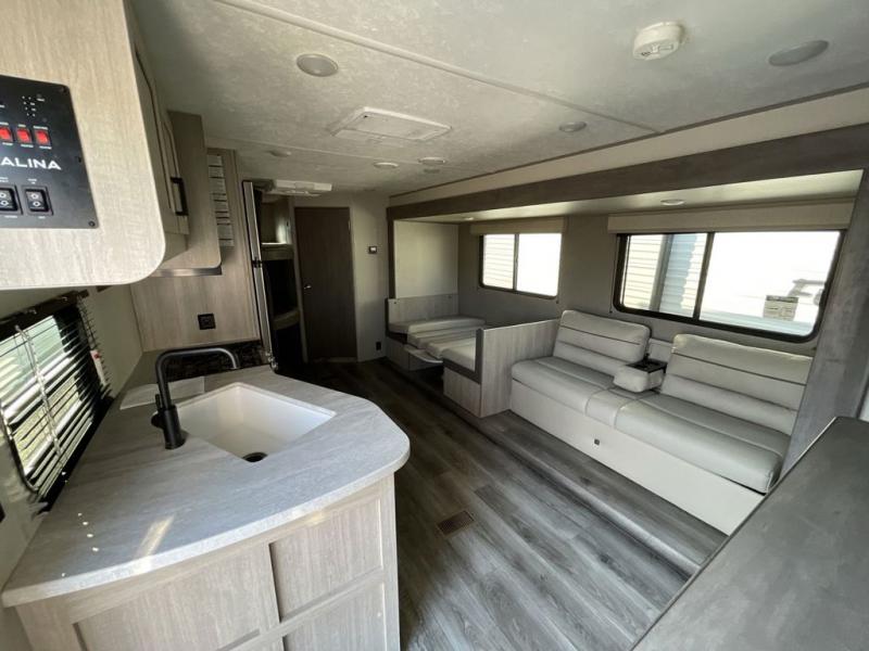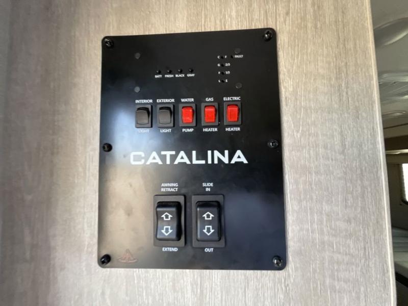 With any Catalina Summit Series 8 by Coachmen you will enjoy an affordable travel trailer packed with at-home comforts! The solid construction includes a Norco electromagnetic powder coated chassis, a seamless Alpha roof membrane, and full length frame outriggers for maximum support and durability. Dexter EZ lube axles with leaf spring suspension and self adjusting brakes provide smooth towing from home to campground, and the premium exterior graphics package is sure to turn heads as you travel down the highway. You will love the features included, such as a JBL Aura Cube media center, magnetic baggage door latches, 4,000 lumen interior touch lighting, LCI One Control, and the list goes on!