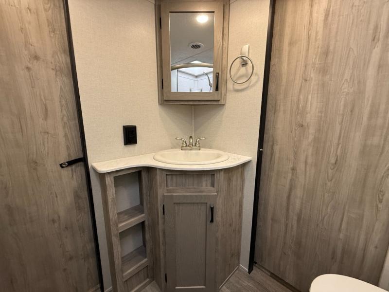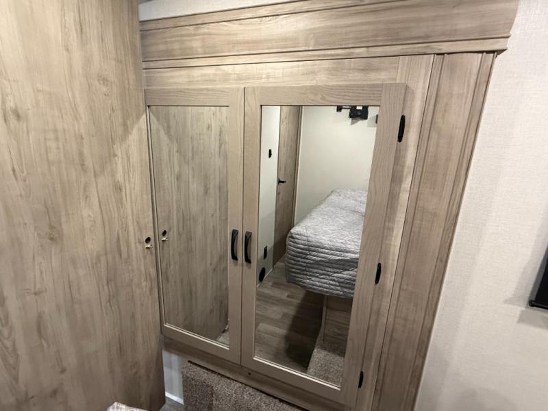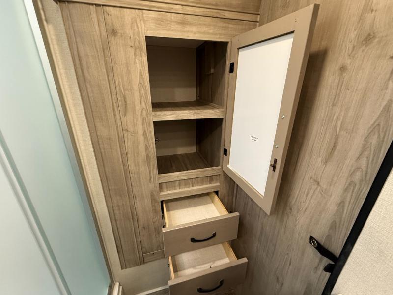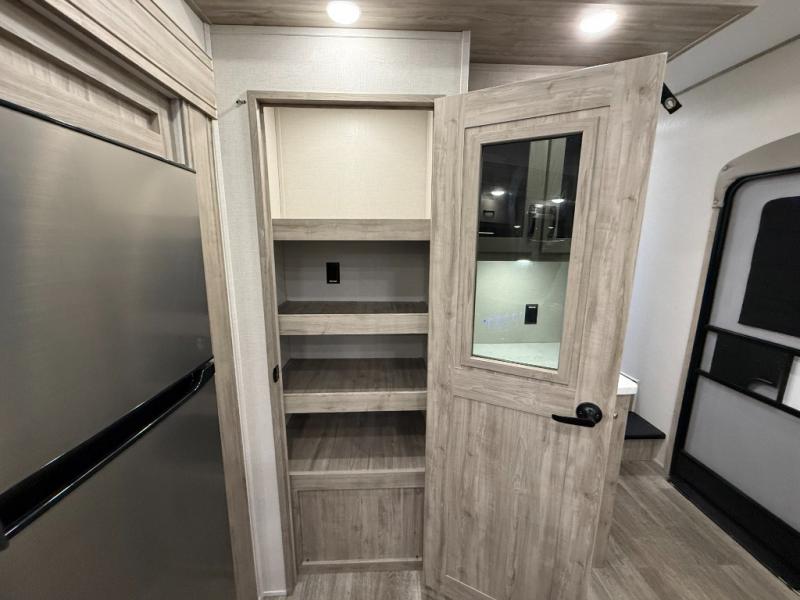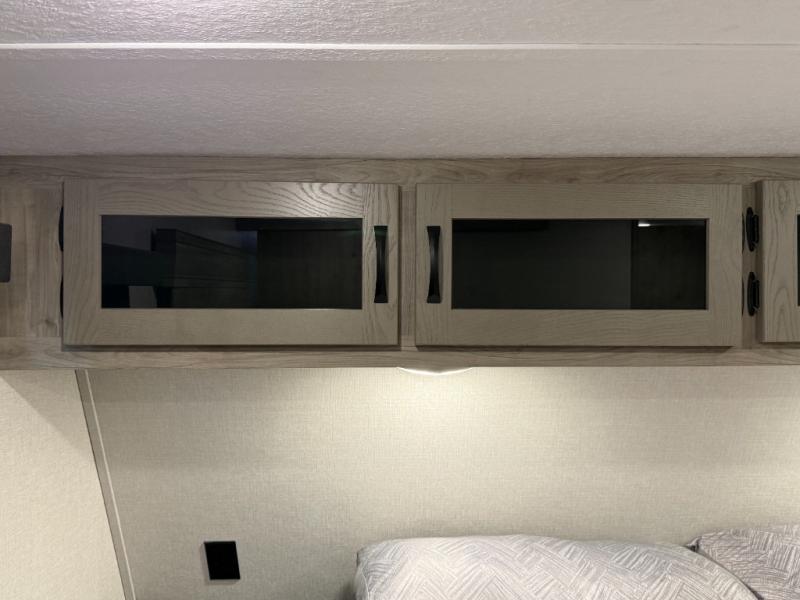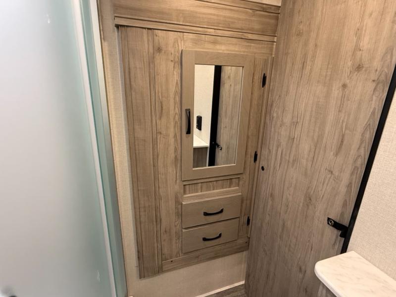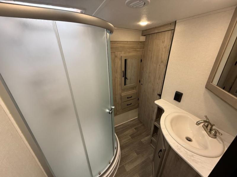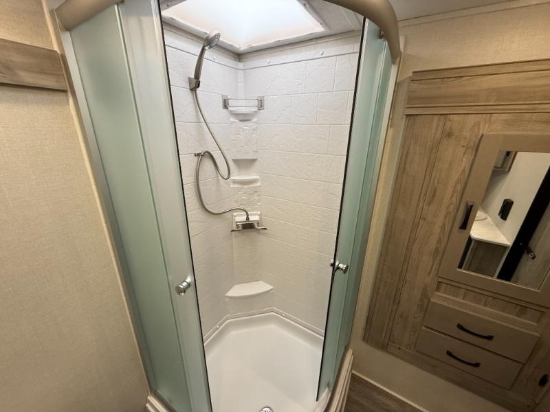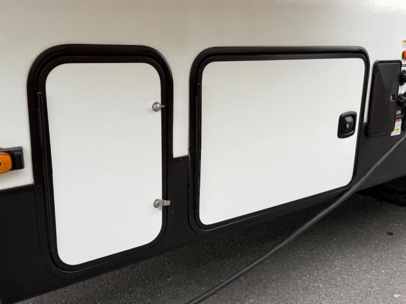 Solar / off-grid readiness: Roof-mounted solar panel with scalable add-on capability; lithium-ready converter & charge controller; hot/cold outside shower; LP quick-connect port.