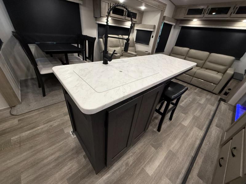Utilities: 50 amp service with detachable marine cord & LED indicator; upgraded on-demand water heater (60K BTU) in some units; 12 V battery disconnect switch; coax cable feeds.