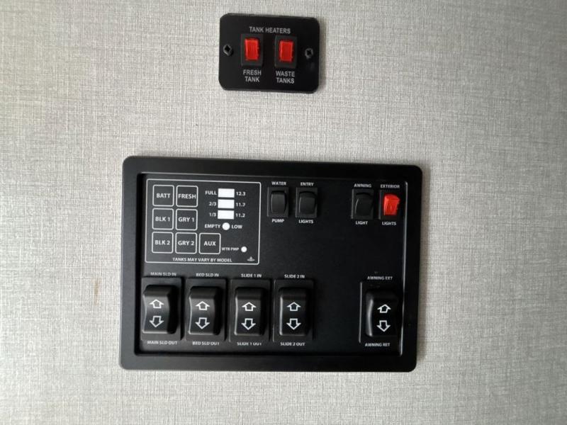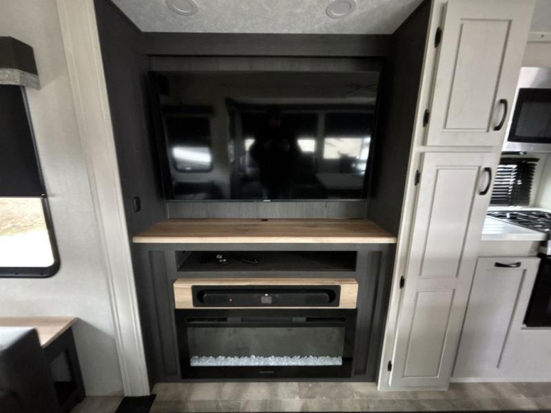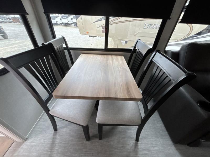 Each Chaparral mid-profile fifth wheel by Coachmen is designed with residential features, loads of storage space, and roomy bedroom suites to make you feel right at home. The durable construction means you can enjoy your RV for years to come. There's 6X double Azdel aluminum cage sidewall system, Weather Shield+ technology, and Tri-Tex powder coated frame technology that will help extend your camping season. Each model includes a Winegard Air 360+ HDTV/radio dome antenna to help keep you connected as you camp, slow rise blackout roller night shades, a new 16 cu. ft. side-by-side stainless glass 12V refrigerator, and a modern electric fireplace to make your space cozy. There is also a large transom window in the kitchen, a modern high-rise faucet, LED motion sensor lights in the bathroom, plus a full-size shower with glass doors and a seat. Now that's what I call luxury! Choose a Chaparral fifth wheel today!