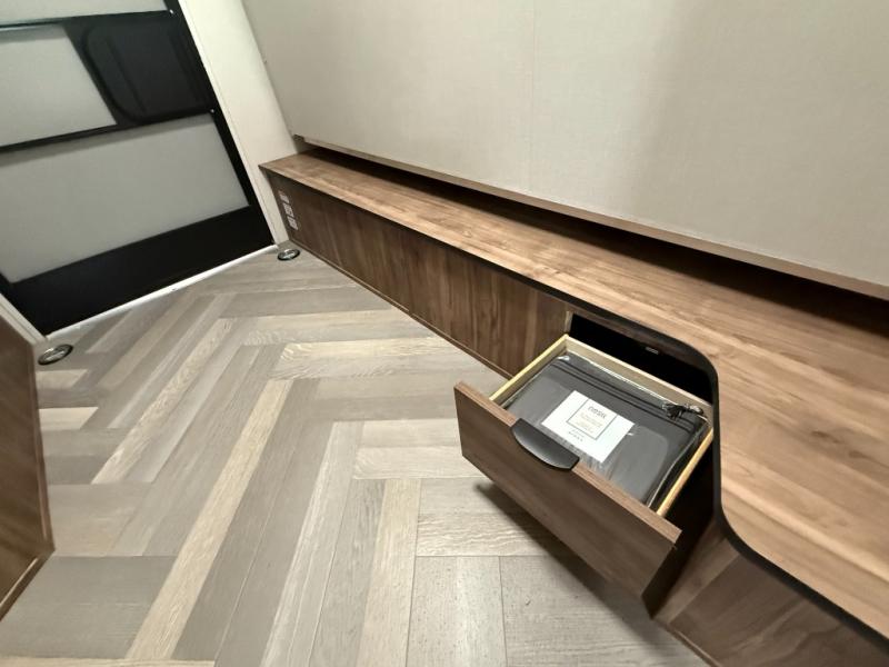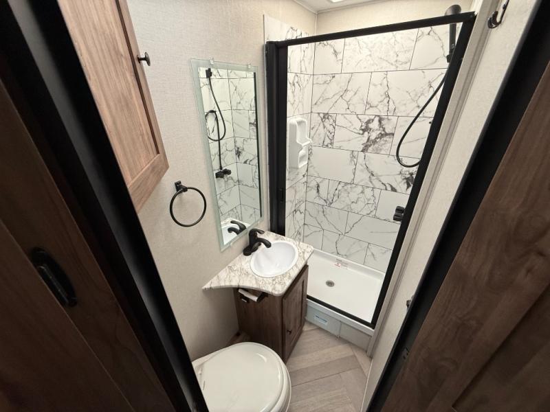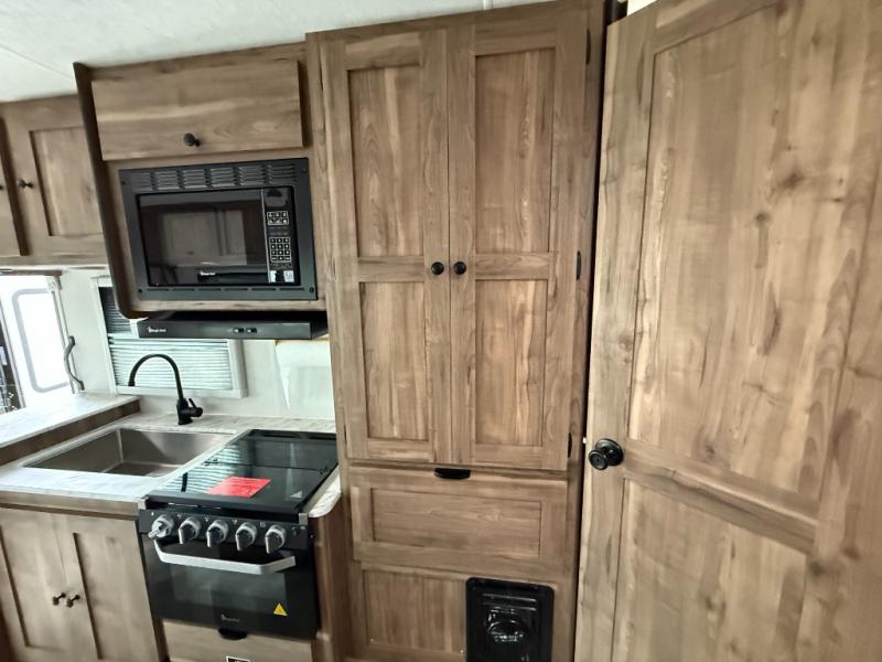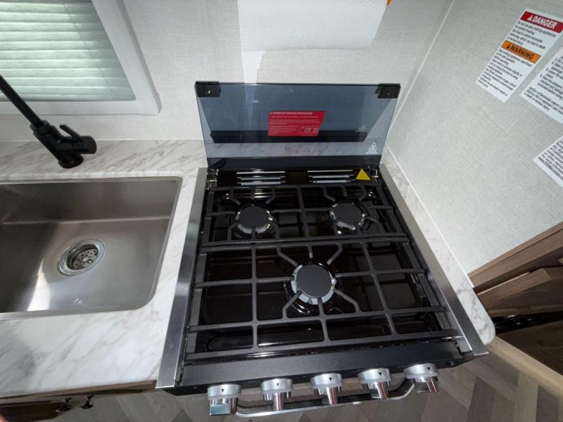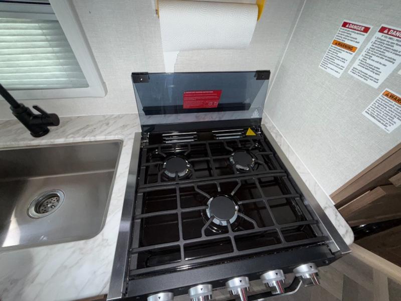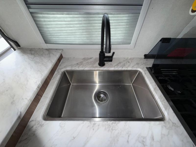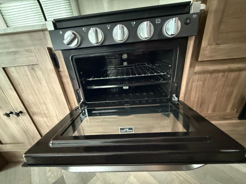 Starting traveling in comfort with this motorhome! It features a rear corner queen bed to lay your head on at night and is conveniently next to the rear corner bathroom which will come in handy at night. There is also a 39" x 95" bunk over cab for sleeping or storage. You could even transform the 44" x 76" J-lounge into an extra sleeping space when you aren't using it to enjoy a meal or play a card game. Speaking of meals, you can easily cook your meals with the three burner cooktop and store any leftovers in the refrigerator. Wind down your nights by watching a movie with the swing-arm TV or set up a chair underneath the 15' power awning!