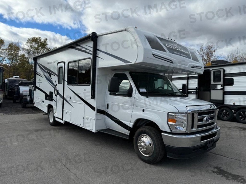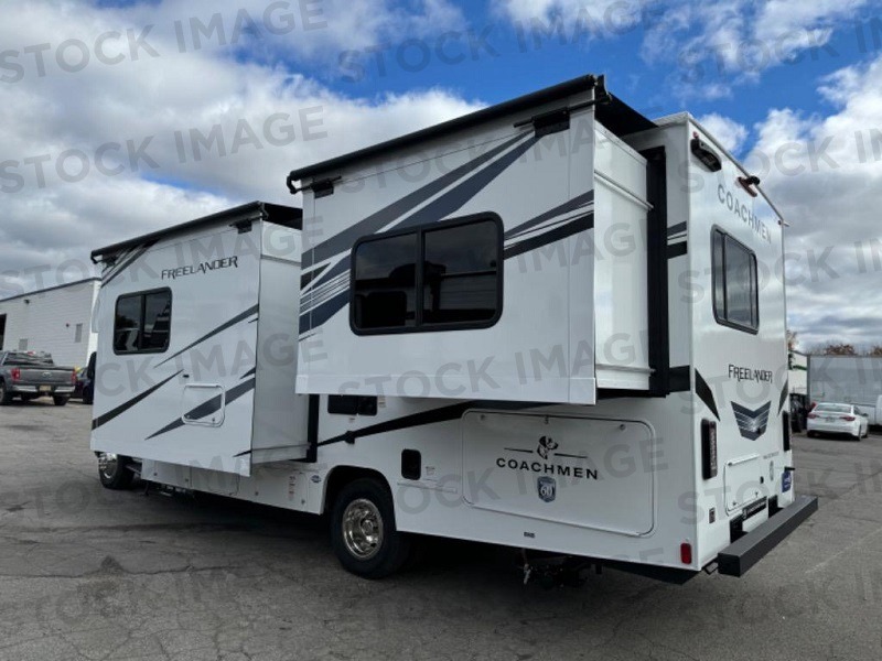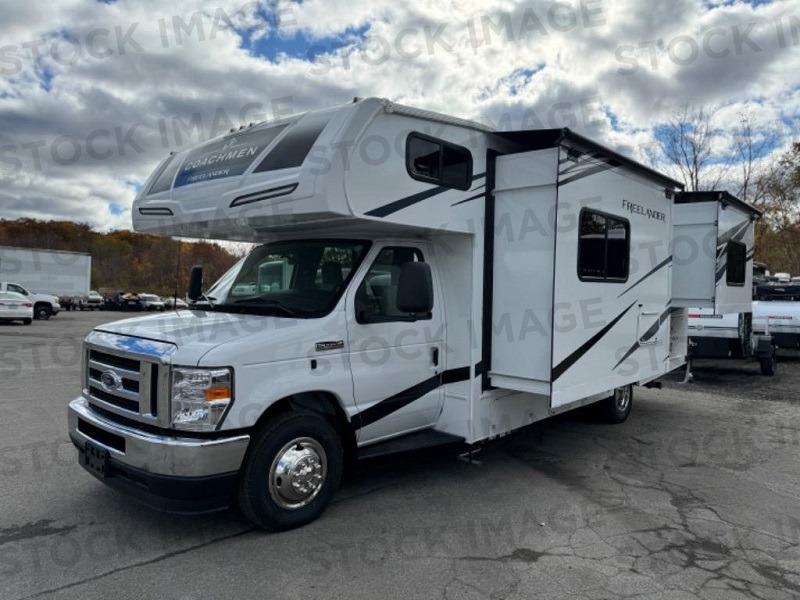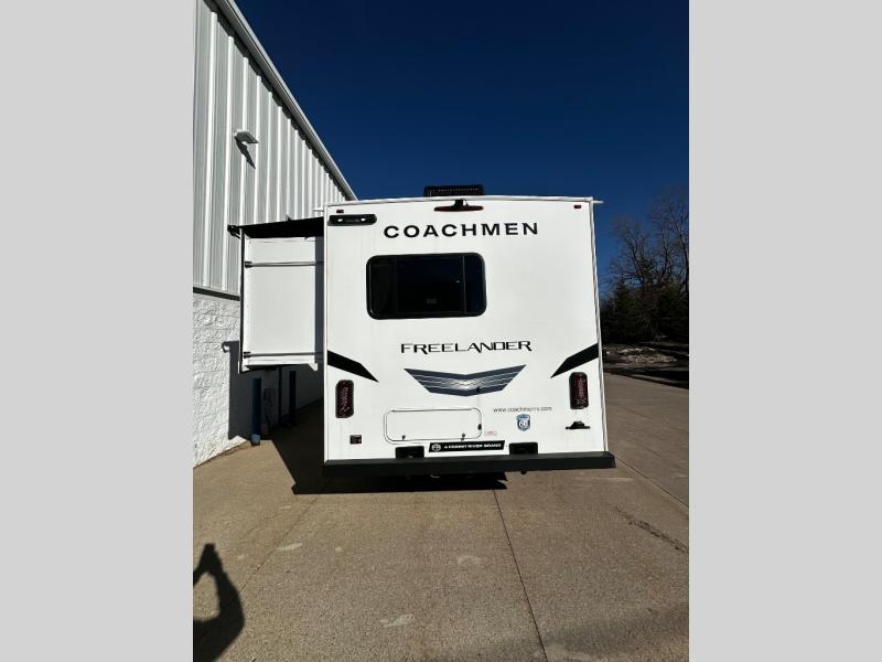 The Freelander Class C gas motorhome by Coachmen is a wonderful choice for anyone looking to get out on the road. A wide variety of floorplans and features offers something for everyone. The Azdel composite sidewalls and seamless one-piece roof membrane provide a solid structure to enjoy all your trips. Conveniences like storage above entrance door with an HDMI and charge station and reclining cockpit seats are standard, along with a rear color backup camera, a premium showerhead and faucet, and one-piece thermofoil countertops. The mandatory Explorer Package includes an exterior shower to rinse off before entering inside and an on-demand tankless water heater for hot water fast. Come find your favorite one today!