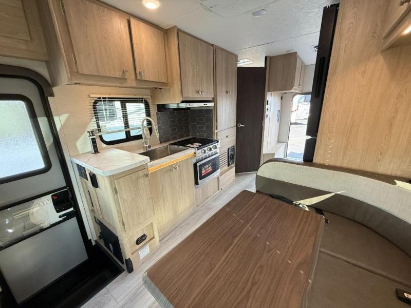 With each Leprechaun Class C gas motorhome by Coachmen you will enjoy "better" interior appointments, like the residential-sized beds, on-demand tankless water heater, and 15,000 BTU A/C. A dash radio and a backup monitor will let you easily navigate the open road like pro. There are also pleated night shades inside, along with premium vinyl flooring, a shower skylight, and USB charging ports to name a few comforts and conveniences. The Leprechaun is constructed with composite sidewall and cabover floor construction plus a seamless one-piece roof material for a durable motorhome made to last.