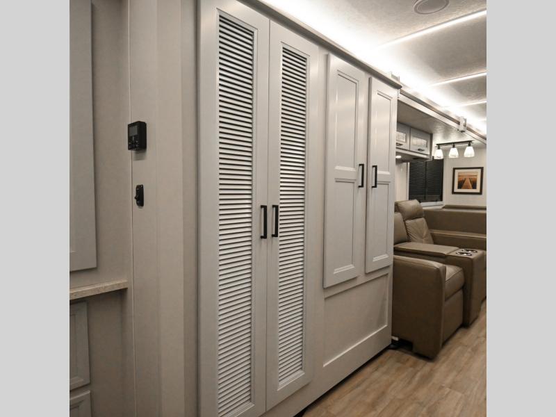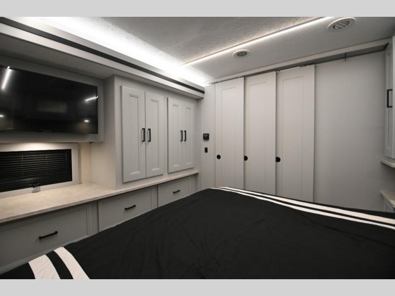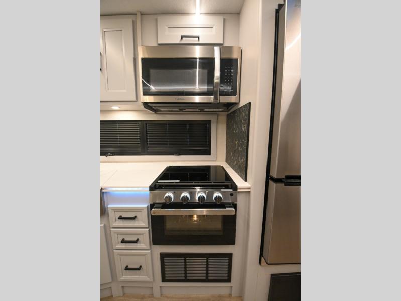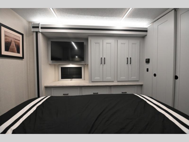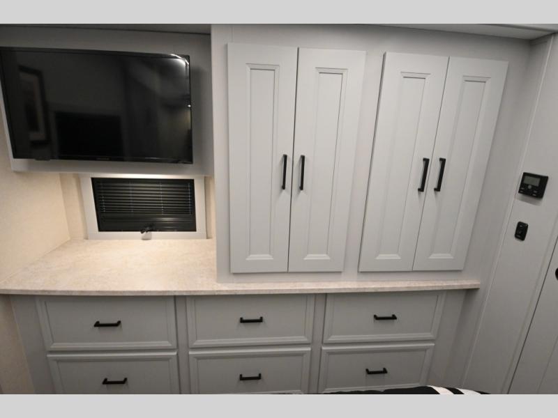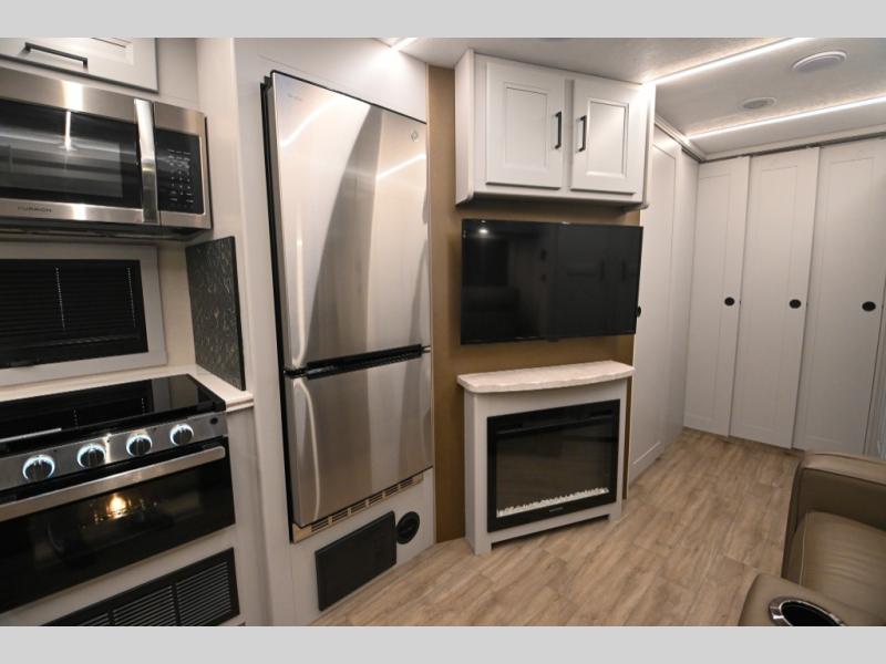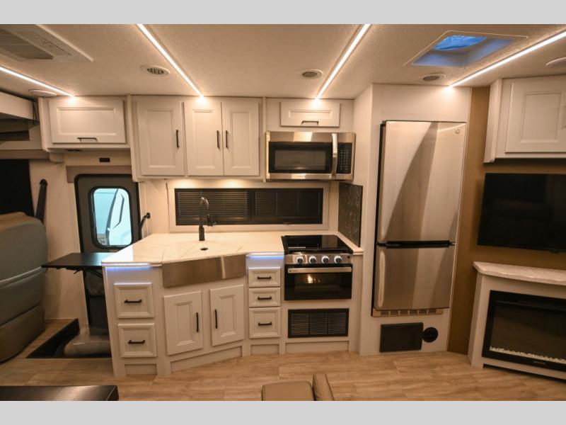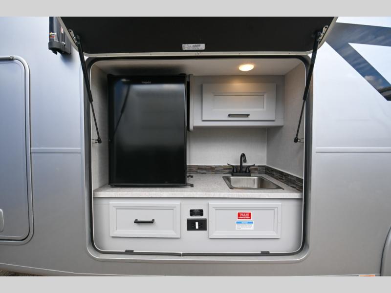 You and your family will be fascinated with this motor home. Perfect for family and guests due to its plenty of room to sleep, like the 70" x 74" king bed for a couple, 78" sofa with bed for kids and the 47" x 81" overhead bunk where two more people can easily fit. This unit is equipped with all the facilities need for a comfortable ride starting with a full bathroom with a 30" x 36" shower, interior kitchen with fridge, farm sink, three cooktop burners, microwave and a 42" x 76" dinette ideal to eat the dinner comfortably. You can also have relaxing and entertaining time whether watching the TV in the living room while enjoying the fireplace or in the 32" bedroom LED TV. In this motorhome, you will also find plenty of space to store your stuff in diverse parts, like wardrobe, dresser, and overhead cabinets in the bedroom area, as well as linen/ pantry and overhead cabinets in the kitchen area. Finally, enjoy the nicest meals in the outdoor kitchen, allowing you to have a great time having food while admiring the surroundings.