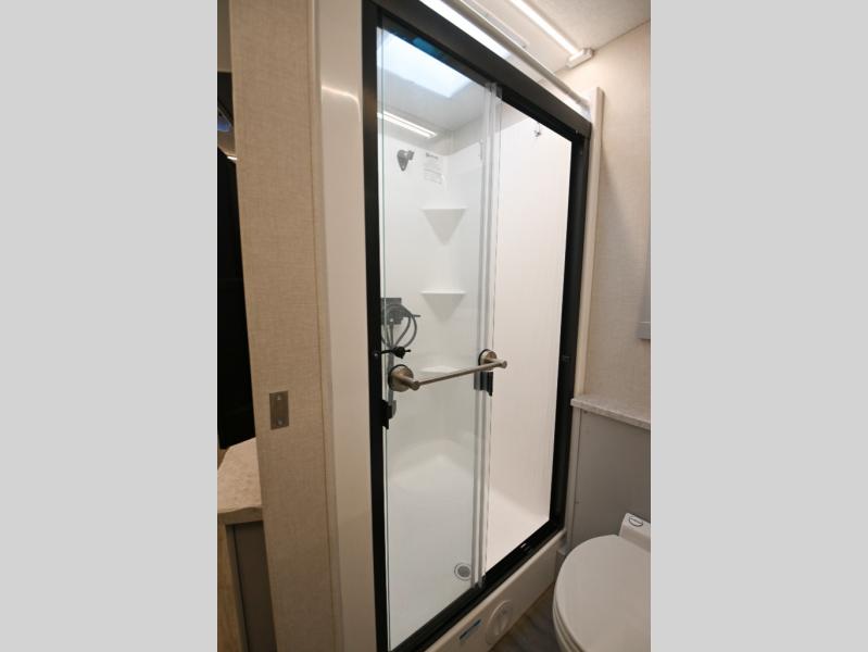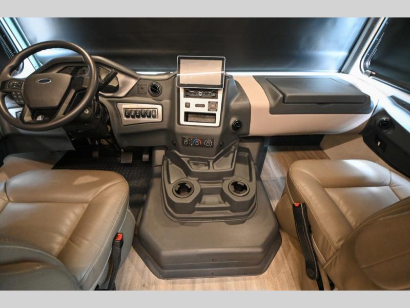 Each Mirada Class A gas motorhome by Coachmen is constructed with a crowned, laminated fiberglass roof with Azdel Superlite composite for added durability, along with high gloss gelcoat sidewalls. There is a 7.3L V8 engine on a Ford F53 chassis for power you can feel, and a 10" touch screen radio with AM/FM radio with Bluetooth capability. The 5.5 kW gas generator, dual coach batteries, and 100W solar panel with a controller will meet all your power needs, and the automatic leveling jacks make setting up camp a breeze. Head inside to find premium linoleum throughout, hardwood cabinet doors, kitchen tile backsplash, and solar privacy shades throughout to name a few comforts. The open road is yours for the taking in a Mirada Class A gas motorhome!