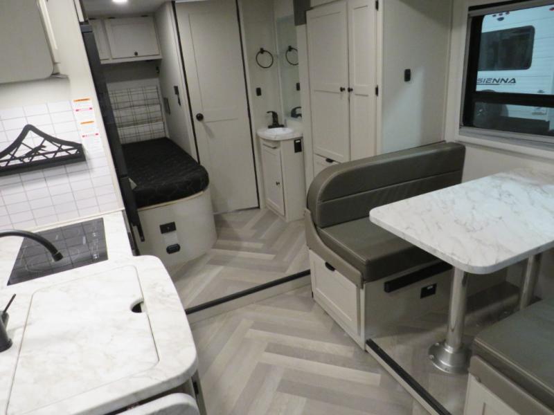You will find comfort, convenience, and affordability in this Prism Select Class C diesel motorhome! The kitchen is stocked with a two burner induction cooktop, large sink, refrigerator, countertop extension, and a pantry so that you can eat your favorite meals no matter where you are. You can also enjoy those meals at the dinette. Sleeping space is easy to find in this coach because there is a full-size bed and a bunk above the cab, and the dinette can also provide sleeping space once it's folded into position. This coach gives you the opportunity to customize as you wish because it comes with a couple of options, like the optional recliners in place of the dinette, an optional TV above the entry door, and the optional outside entertainment center as well.