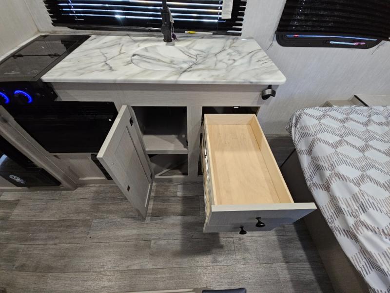 Any Remote travel trailer by Coachmen RV was designed with getting you out to explore in mind. These cute but mighty campers will easily allow you to enjoy some downtime from every day life. With the Aluma-cage construction including a vacuum-bonded laminated roof, and dual Azdel/fiberglass walls, your Remote trailer is not only sturdy but will be easy to maintain. Four stabilizer jacks will have you feeling secure at your campsite, and the power awning with LED light will allow you to create an inviting outdoor space with protection from the elements to use both day and night. There is ample storage throughout the interior, plus plenty of exterior storage as well. The outdoor griddle gives you cooking options, and the magnetic door latches on exterior storage compartments will keep your gear secure!