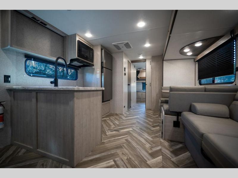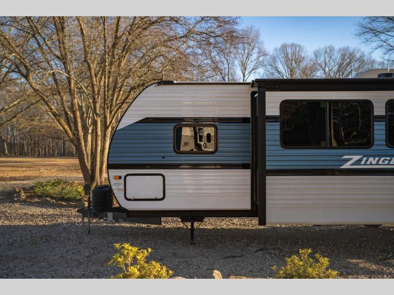 Lead your family to a great vacation getaway in any one of these CrossRoads RV Zinger travel trailers! They feature an aerodynamic front end, Keyed-Alike door locks, Secure Stance entry steps, and exterior speakers with LED accents. The interior of each model includes kitchen backsplash and pressed countertops, along with generous storage, designer valances, and LED lighting to keep your space well lit. You will also appreciate USB ports to keep your electronics charged up, and there is an AM/FM stereo with a Bluetooth soundbar to keep the party going!