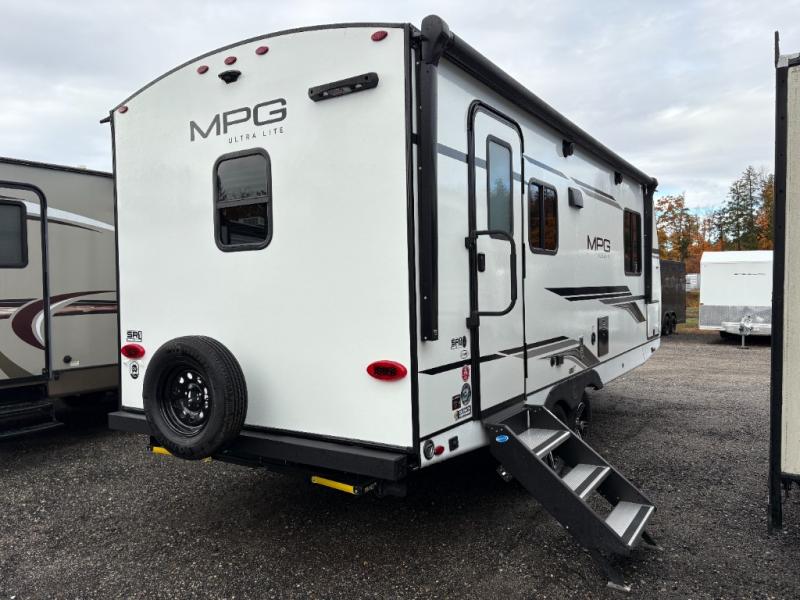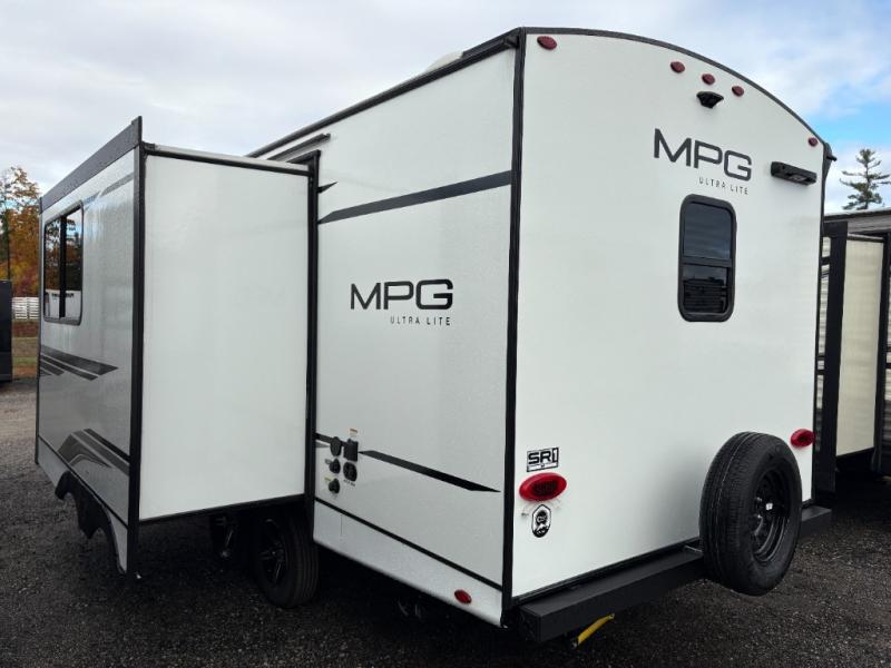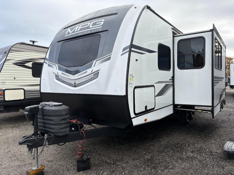 With any MPG travel trailer or toy hauler by Cruiser you will find Azdel composite laminated walls, and a high gloss fiberglass front cap with LED lighting for a sleek look. There are seamless kitchen countertops and plywood flooring that will be easy to clean, plus residential hardwood cabinets with hidden hinges for a more at-home feel. The slam latch baggage doors with magnetic latches will make loading up easier than ever, plus the pass-through storage includes motion sensing LED lights you are sure to appreciate. Each model also includes multiple charging stations with 12v and USB ports, a four speaker soundbar system to listen to your playlists, and a dual ducted A/C to keep you cool during those hot summer months!