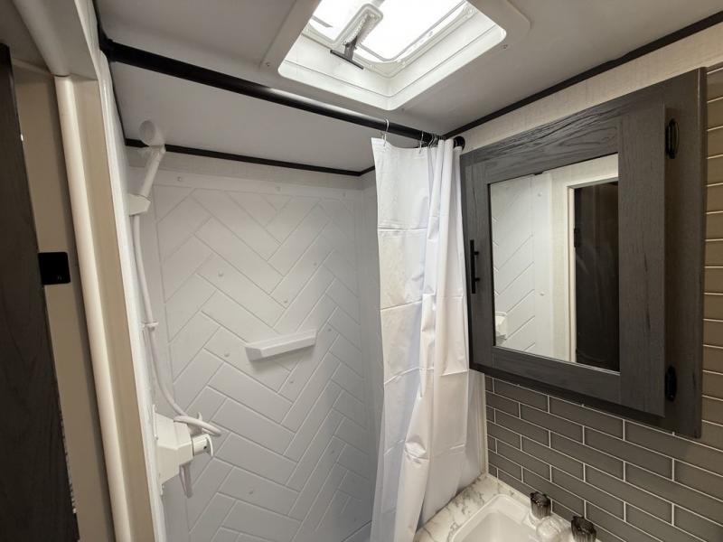 Gently used demo model, rear living couples coach with two entry doors, slide topper awning, tankless water heater, and much more!