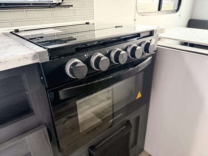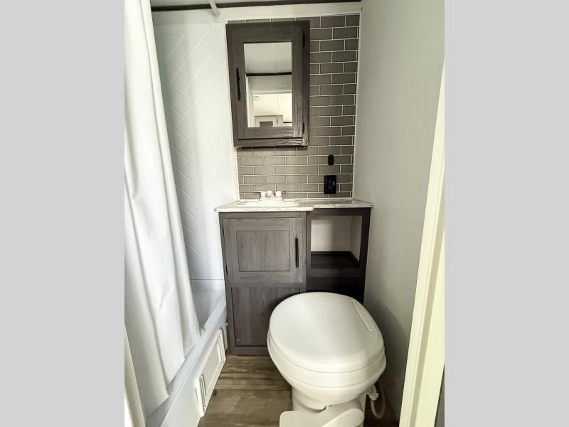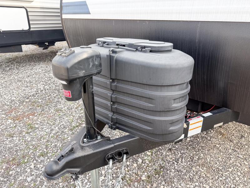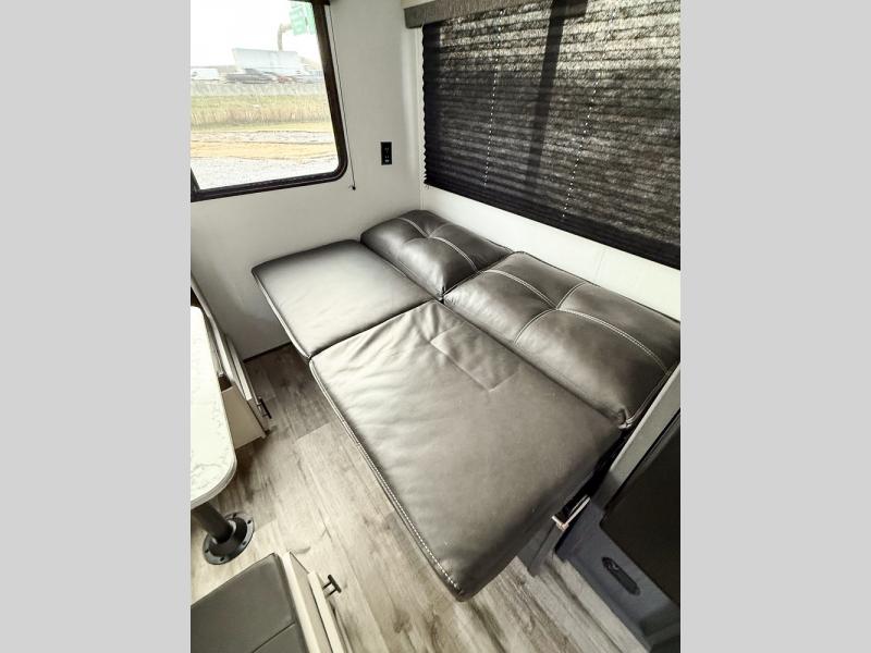 Get ready for camping fun that could include making s'mores, hiking the trails, or whipping up a special meal for everyone! The cozy mornings will begin with your queen bed while the other campers are sleeping on the booth dinette and jack knife sofa with a footrest. The cook will soon have breakfast made using the kitchen amenities while others can take turns getting ready for the day in the full bathroom. You can dine inside once you easily set up the dinette for mealtime or outside under the 16' awning. Now it's time to take the hike and grab your fishing poles from the exterior pass-through storage!