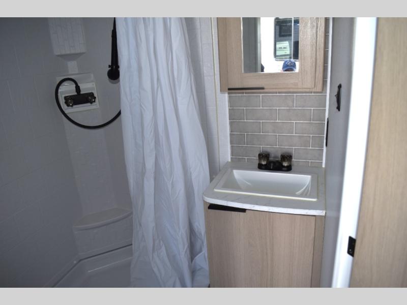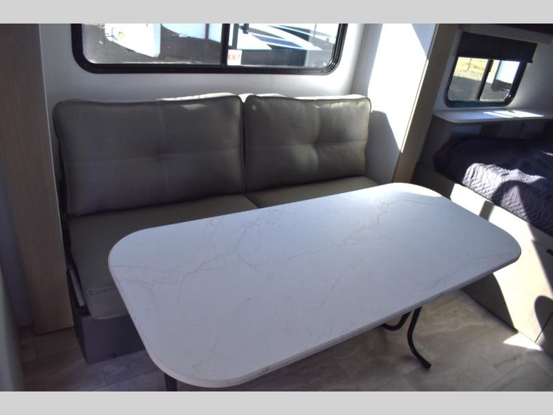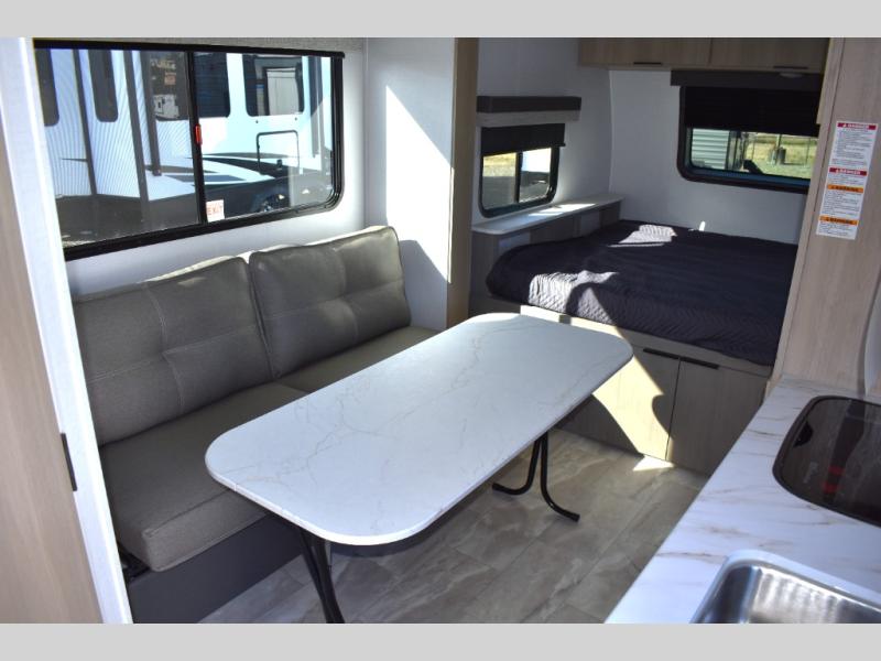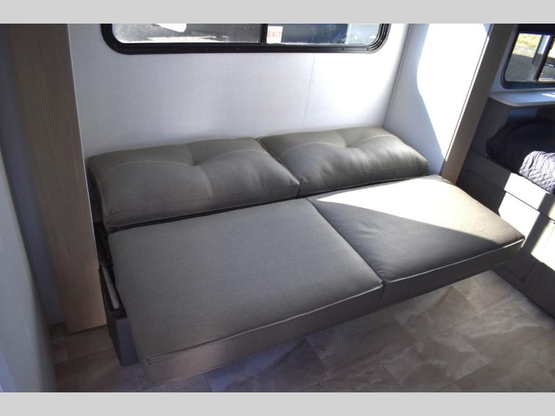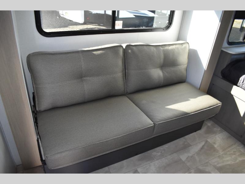 This cozy travel trailer will be perfect for weekend stays at the campground! You will have a front queen bed to sleep on instead of on the floor or an air mattress, and the full bath is a luxury you won't want to camp without. After you've whipped up breakfast on the two burner cooktop or in the microwave oven, you can dine at the jackknife sofa with an indoor/outdoor table. This model also includes a 10 cu. ft. refrigerator and pantry for food storage!