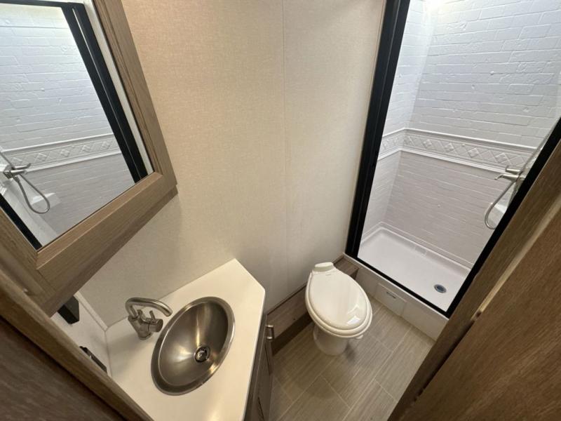 Whether you're traveling to the Grand Canyon or your local state park, you'll enjoy every minute in this coach! The swivel captain's seats can become a part of the living area once you park, and your guests can sit around the U-shaped dinette within the full-wall slide. There is a swing arm TV in the cab-over bunk to keep everyone entertained, or you can all head outdoors to sit under the 16' awning. Head back inside to rest on the queen bed that folds up for more space, and the bedroom wardrobe will allow you to keep your clothes and shoes tidy!