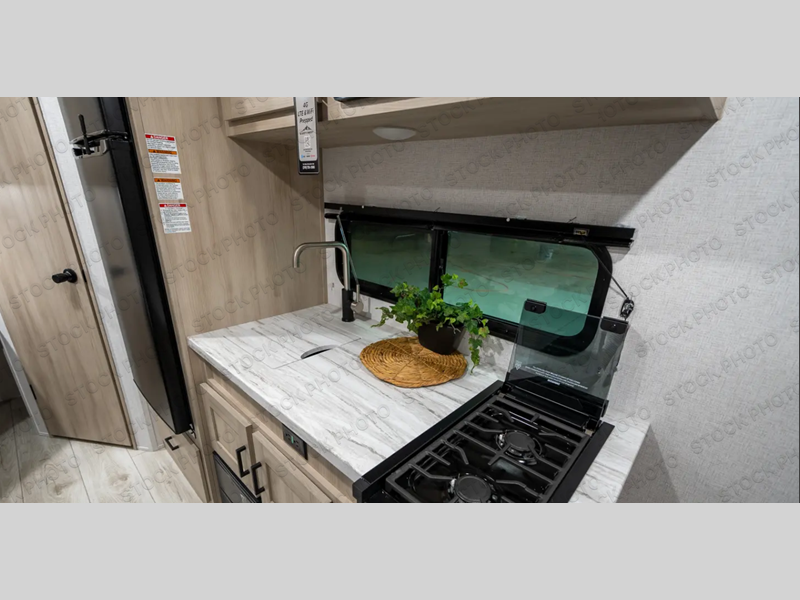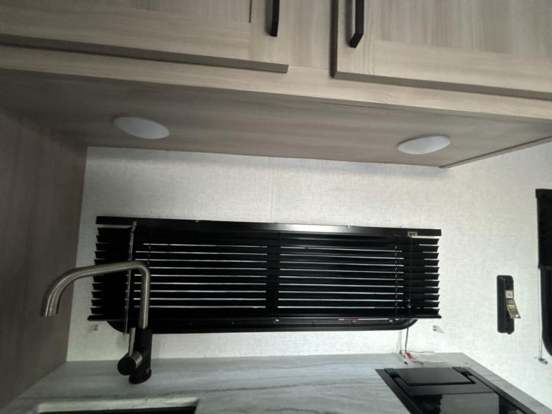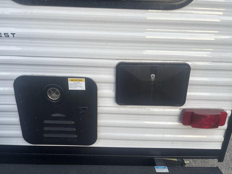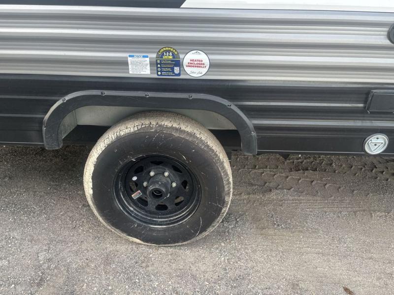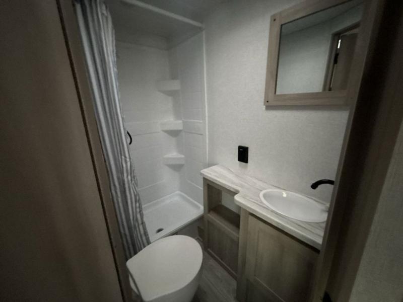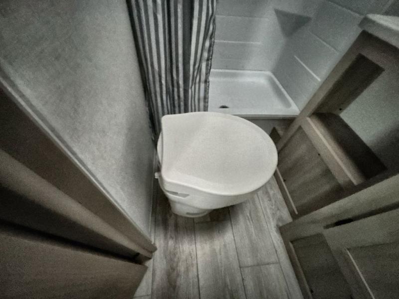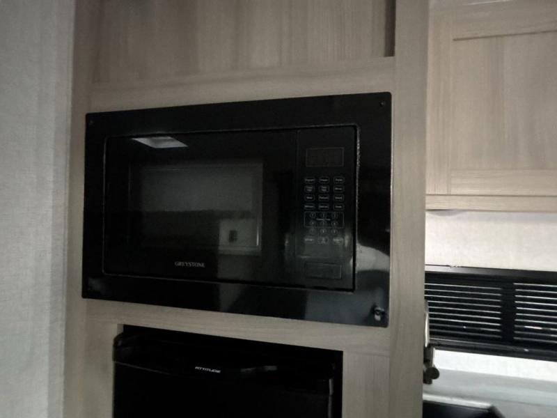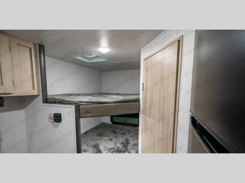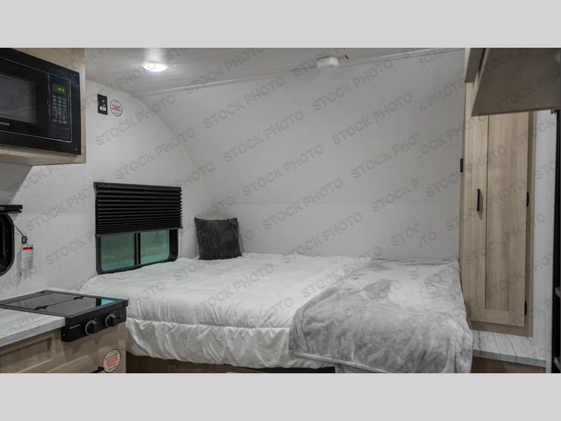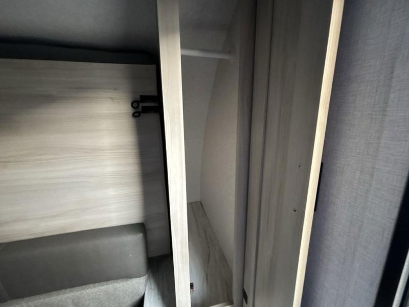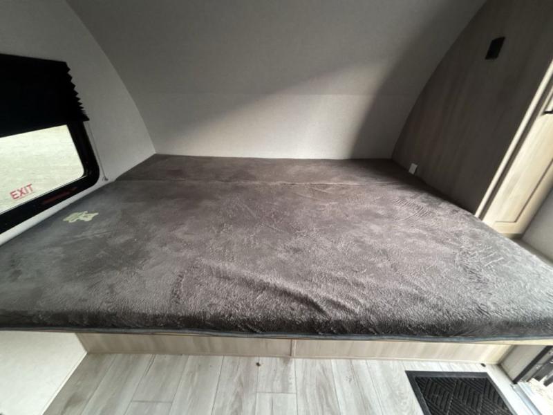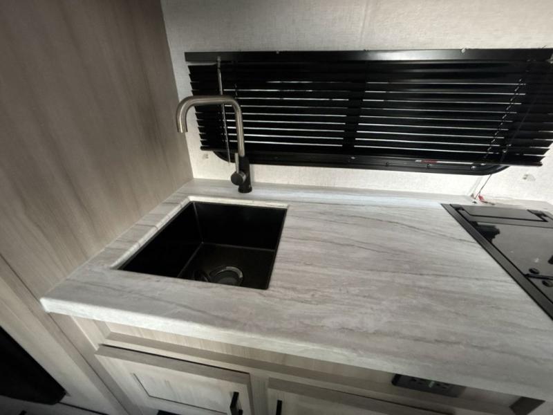 You'll love every minute camping in this single axle travel trailer. Once you arrive at the campground, you can unload the pass-through storage and put out the 14' power awning with adjustable legs and LED light strip. The two burner cooktop and microwave oven will let you make meals each day, and you can dine at the booth dinette once dinner is made. If you have an overnight guest or two little ones, they can sleep here at night, while you take the front queen-size Murphy bed. There are also double-size bunks with storage for even more sleeping space!