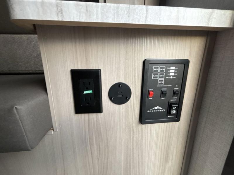 With any Silver Lake travel trailer by EAST TO WEST, you will enjoy comfort features at every turn. There is an outside shower with hot and cold water, a detachable power cord, roof mounted solar prep and backup camera prep, plus a fully finished pass-through storage so you can bring along extra camp gear. Inside, you'll appreciate the 6' 9" ceiling height, along with LED lighting with motion sensor, seamless countertops with no T-mold, plus residential inspired kitchen and living spaces. Each model also includes USB and C-port charging stations, plus they are cable/satellite ready if you choose to add entertainment options.