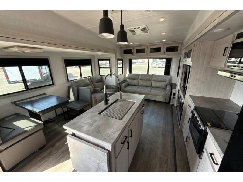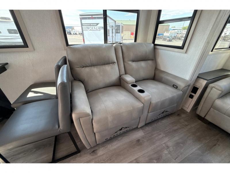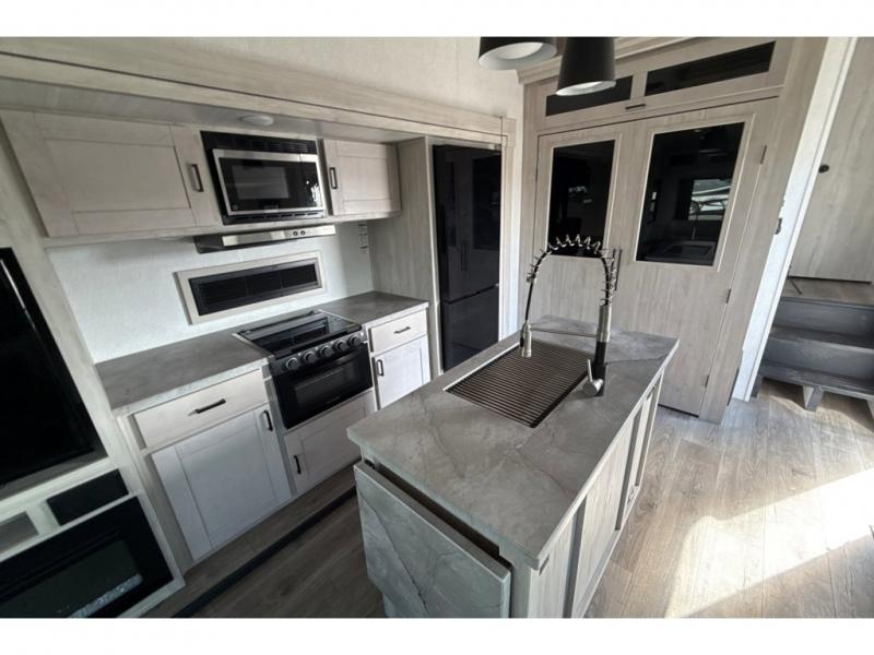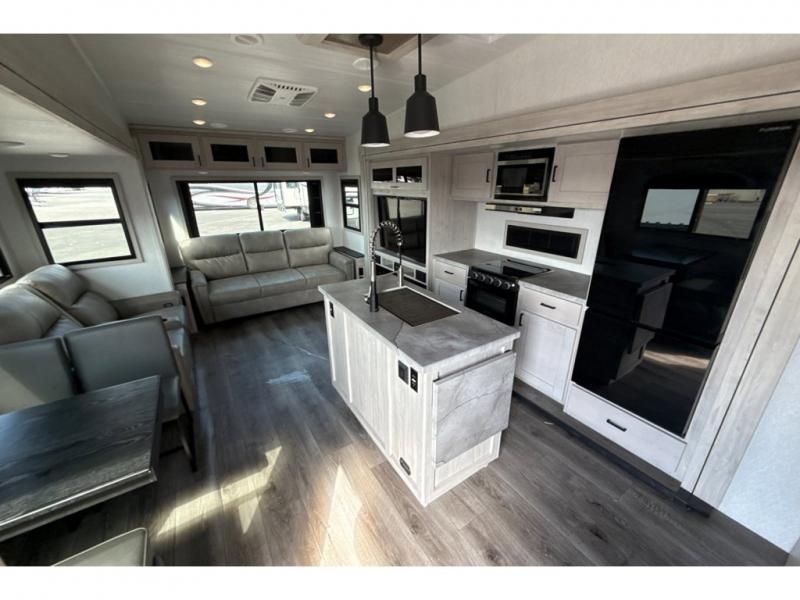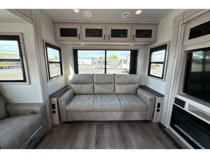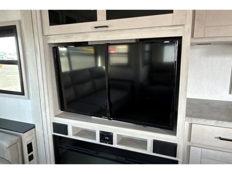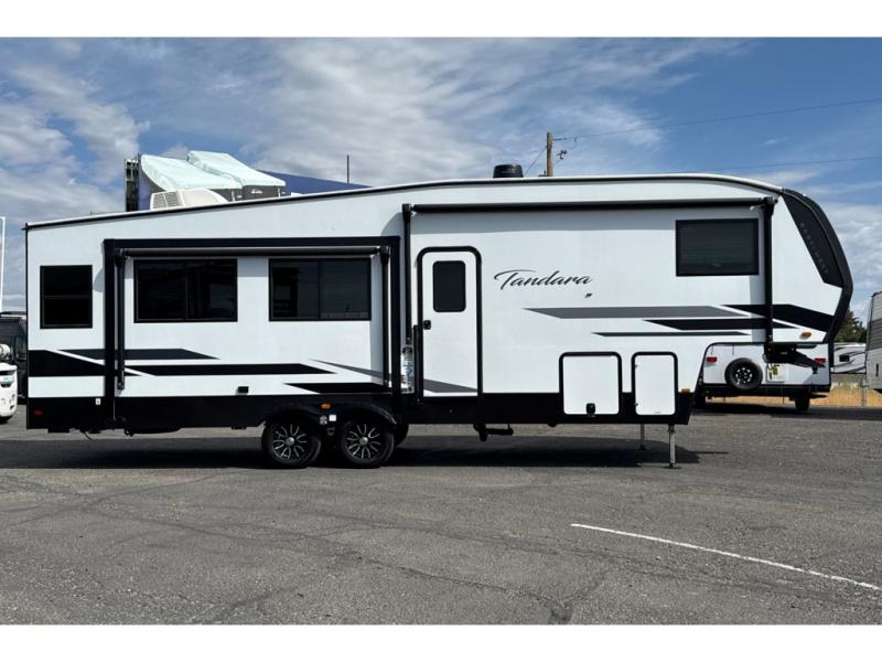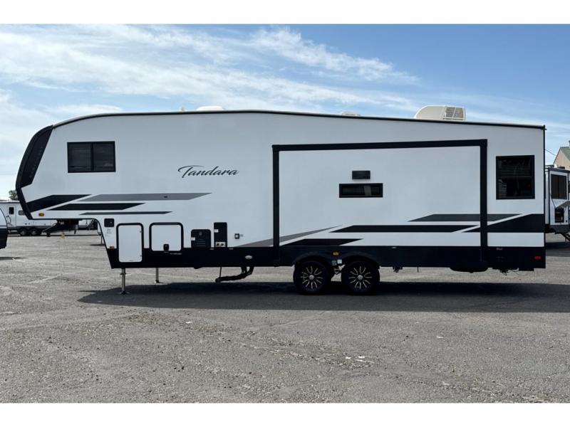 If you're ready to enjoy some luxury at an affordable price, choose this Tandara fifth wheel! The opposing slides will keep the interior feeling open and spacious so that you can enjoy some time on the theater seating. As you relax, you can watch the 50" LED TV across from you, and the fireplace below the TV will provide some extra ambiance. You'll enjoy your own private bedroom to sleep in each night, and the king-size bed is going to be ultra comfortable. There is even under-bed storage where you can keep some extra belongings. The four-burner range in the kitchen is going to be unbelievably helpful when you have a lot of food to prepare for breakfast in the morning.