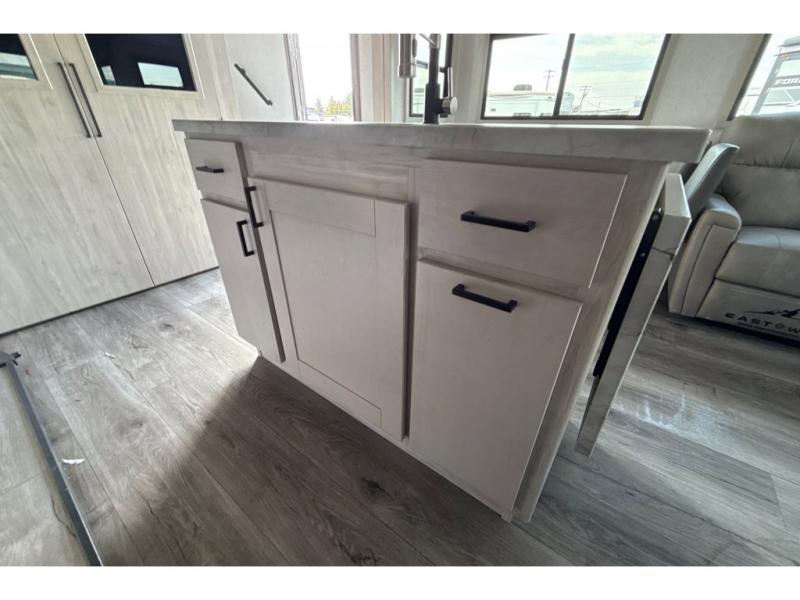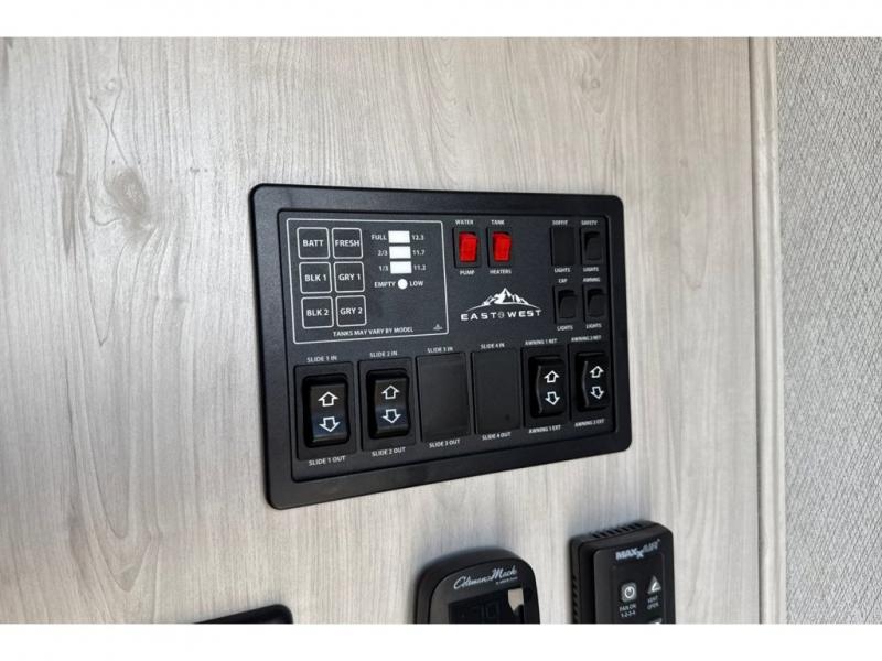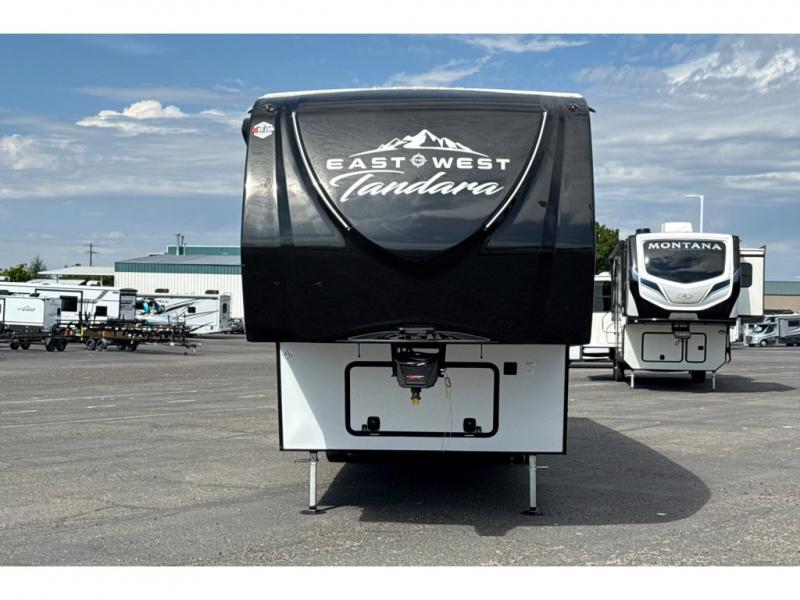 With any Tandara fifth wheel by EAST TO WEST, you will enjoy many standard features to make each trip enjoyable. The Tandara Luxury Package includes a universal all-in-one docking station, a 60k BTU on-demand tankless water heater, a 50" LED Smart TV, plus more depending on the model you choose. You will also appreciate the Tandara Extended Season Package with ductless flooring, dual attic vents, plus a heated, insulated and enclosed underbelly for added protection. Each model features Alphaply TPO roofing and a slick gel coated fiberglass exterior, and the Tandara Towing Package will make each journey smooth. Head inside to find LED lighting, ball bearing full extension drawer guides, oversized underbed storage, and and many more comforts!