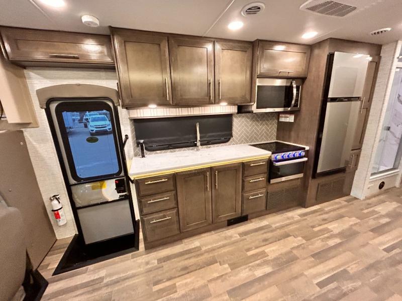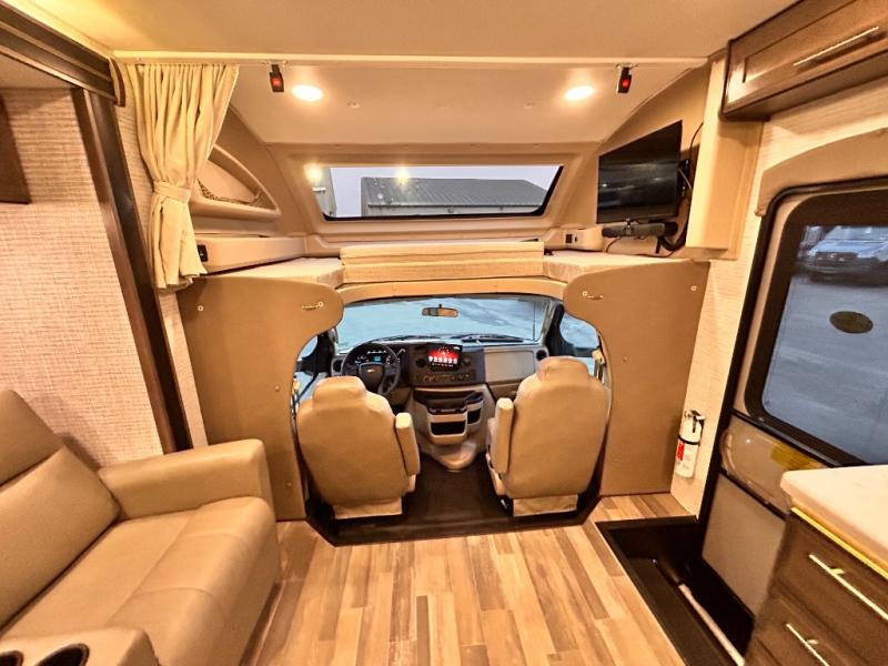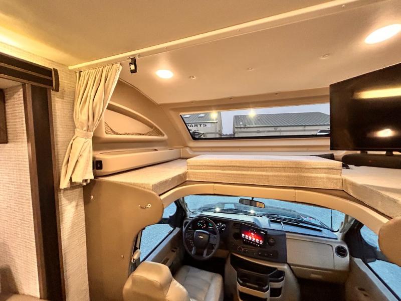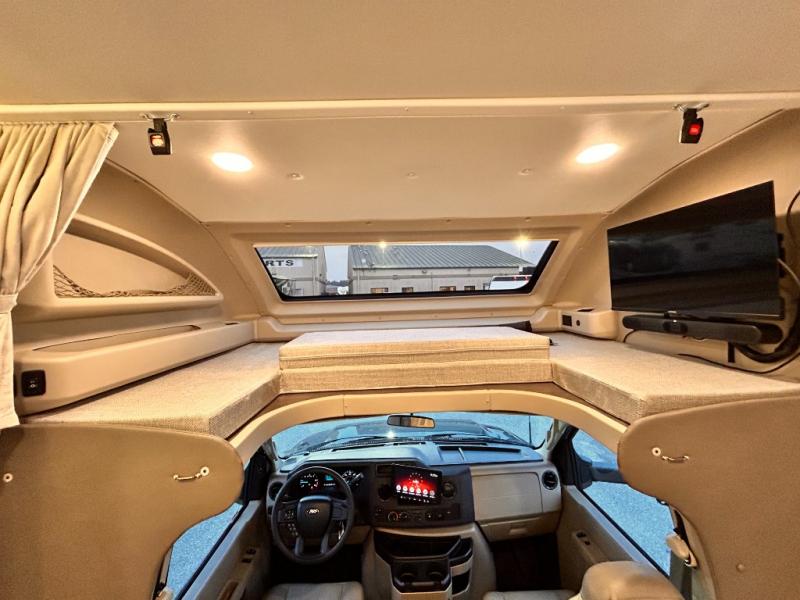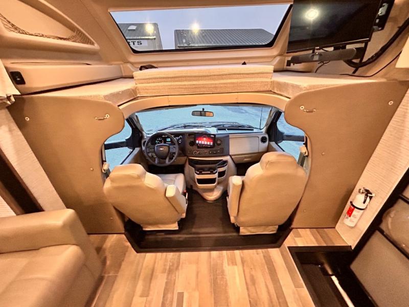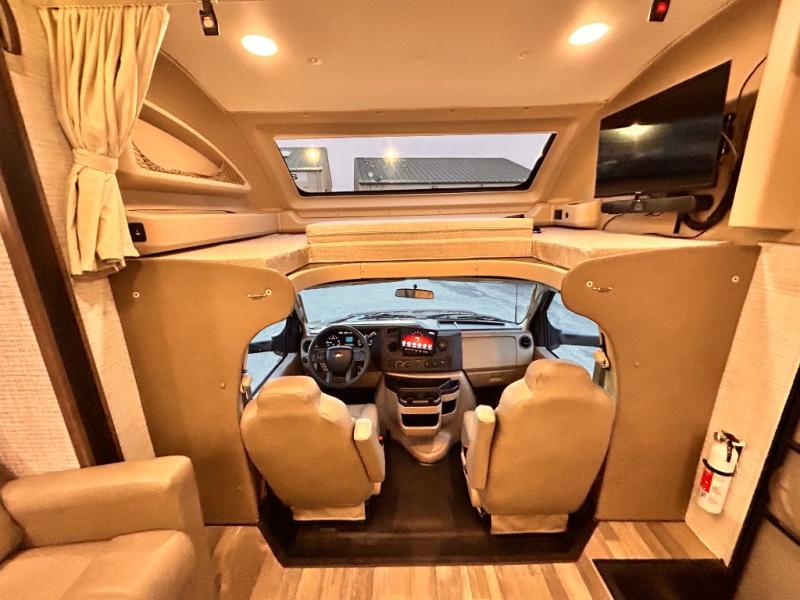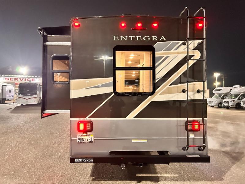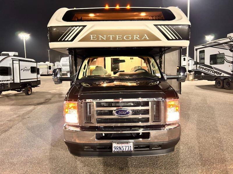 Make one of these Entegra Coach Esteem Class C gas motorhomes your own! The interior design includes solid-surface countertops that pair well with the many technological upgrades. The fully custom-molded ABS surround in the cab area features its signature panoramic window and power shade for a beautiful view while you drive and provide privacy at night. They also come with E-Z Drive Elite which has a computer-balanced driveshaft, Koni FSD shocks, Hellwig helper springs, and a heavy-duty rear stabilizer bar for a smooth ride. Automatic leveling jacks will make set-up a breeze and the electric awning with LED lights will create an outdoor living space where you can relax after unpacking. Inside, you'll enjoy hardwood cabinet doors and drawer fronts, blackout night roller shades, and high-intensity recessed LED ceiling lights to keep your space well lit. There is also a JBL audio system and a BMPRO total coach control system to easily manage your unit's functions!