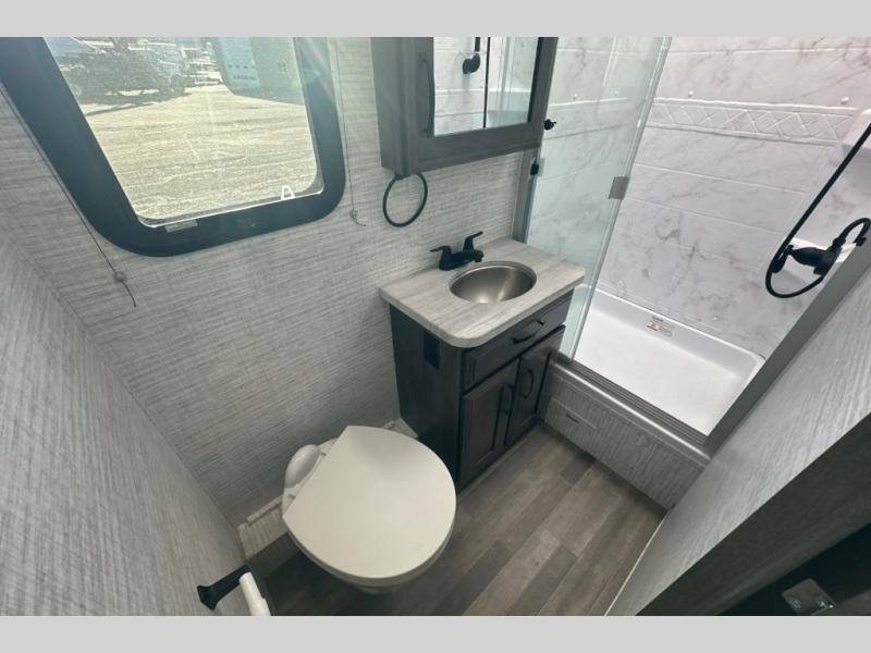 Looking to travel to see family and friends while stopping along the way to take in the scenery? Need comfortable accommodations for you and another plus extra sleeping space when you have overnight guests? This coach provides a full-wall slide for more interior floor space and includes a queen bed for a good night's sleep, a wardrobe for clothing, plus a U-shaped dinette and pantry. The dinette doubles as sleeping space, plus you have a cab-over bunk. The cook will have everything nearby to whip up meals including a residential-size microwave, and the full bathroom allows everyone to skip the public facilities along the way.
