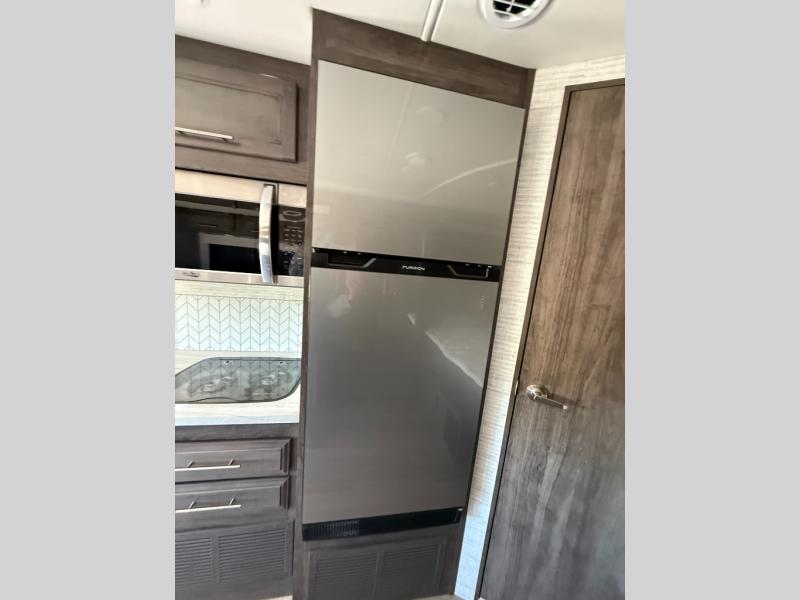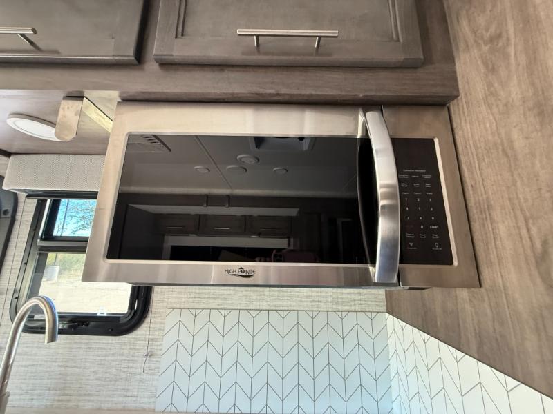 With any Qwest SE Class C diesel motorhome by Entegra Coach, you will enjoy a safe and enjoyable trip each time you take to the road! Each model sits on a durable Mercedes-Benz 3500 chassis with a 170 in. wheelbase and a 9-speed automatic transmission for an overall better driving experience. There is a one-piece, seamless fiberglass front cap to combat leaks, and the TuffShell construction will hold up over time. The driver will appreciate the 7" integrated Mercedes-Benz MBUX infotainment center that includes Apple CarPlay and Android Auto so they can navigate the road like a pro, plus there are backup and side-view cameras for easy parking. You will also appreciate an exterior utility center, an outside shower, electric stabilizer jacks, and many more exterior conveniences. Head inside to find LED-lit pressed countertops, decorative kitchen backsplash, pleated blackout shades for added privacy, and high-intensity LED ceiling lights to keep your space bright and open.