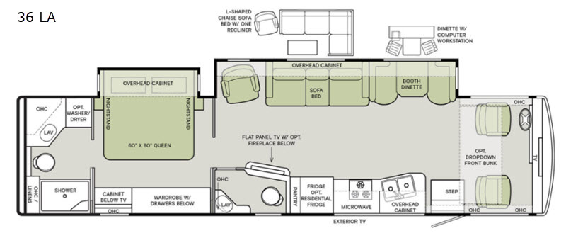 | TV Info | Cab Flat Panel, LR Flat Panel, BR Flat Panel, Ext Flat Panel |