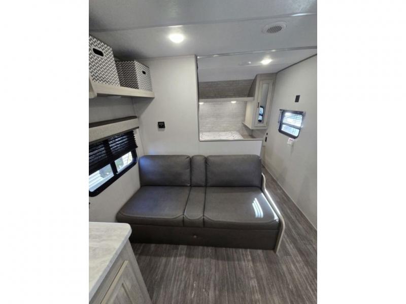 Comfortability, usability, and quality is what you will find in each one of these Forest River Aurora Light travel trailers! They are designed with a superior build and packed full with industry leading, functional, and distinctive standard features. The diamond plate rock guard will protect your unit from road debris and the nitrogen filled radial tires, which keep their pressure longer, offer better fuel economy. You will also find upgraded JBL Elite exterior speaker outside, an electric awning with multicolor lights and remote, plus flush mount baggage doors for easy packing. The interiors are beautifully designed with matte black kitchen and bath faucets, black nightshades in the living room, and GE kitchen appliances!