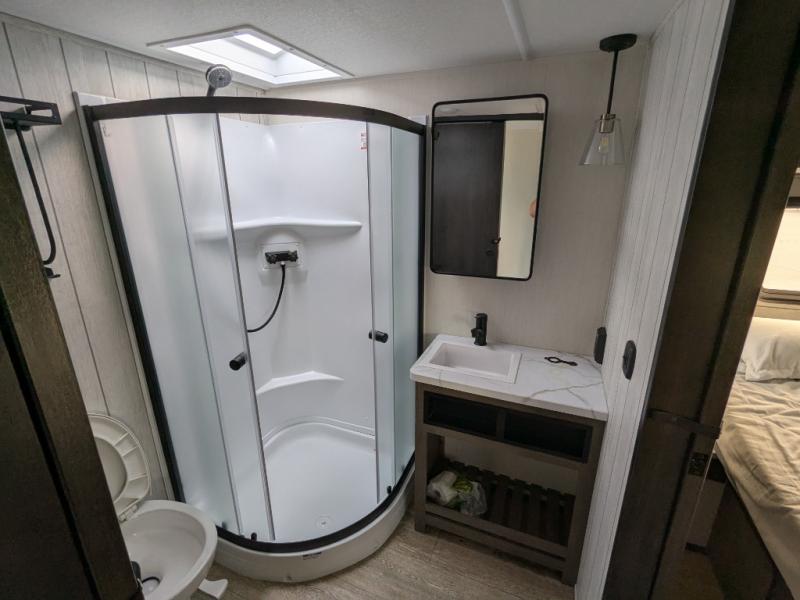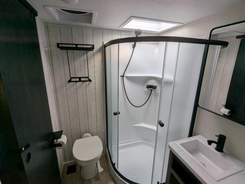 You will have amazing residential comfort in the Forest River Cherokee Arctic Wolf Suite fifth wheels! These units have a “SuperStor” dual-cavern basement storage compartment to allow you to bring more gear, and they have been constructed with a “ToughBend” rigid skirt metal design, a 1x engineered wood “SuperTruss” roof structure with 3/8" decking, and a 5/8” tongue-and-groove plywood floor decking. Each model includes Leash Latch pet safety technology, an outside shower with hot/cold water, preparations for an exterior TV, and motion-sensing lighting. The supersized central air conditioning unit (15,000 BTU) with quick cool and second oversized 15,000 BTU ducted A/C will cool your unit down in a snap when you camp in the hot summer months.