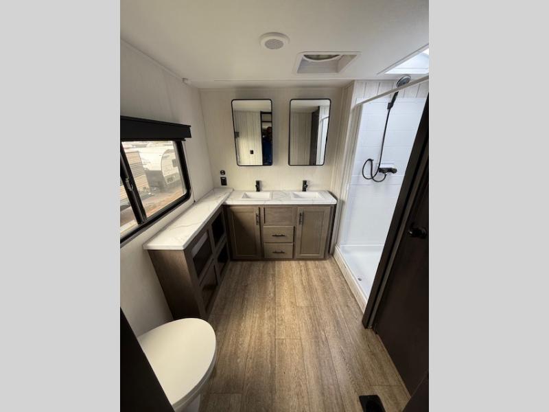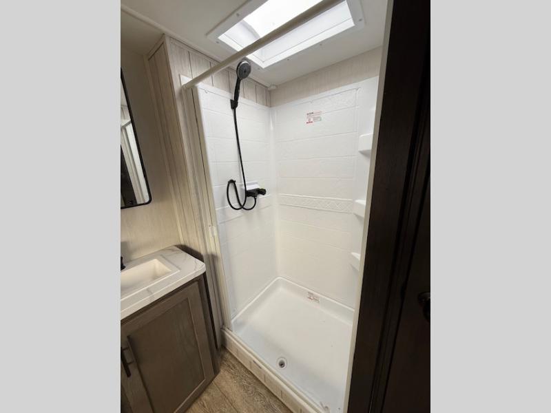 You will have amazing residential comfort in the Forest River Cherokee Arctic Wolf Suite fifth wheels! These units have a “SuperStor” basement storage compartment to allow you to bring more gear, and they have been constructed with a “ToughBend” rigid skirt metal design, a 1x engineered wood “SuperTruss” roof structure with 3/8" decking, and a 5/8” tongue-and-groove plywood floor decking. Each model includes Leash Latch pet safety technology, an outside shower with hot/cold water, preparations for an exterior TV, and motion-sensing lighting. The supersized central air conditioning unit (15,000 BTU) with quick cool and second oversized 15,000 BTU ducted A/C will cool your unit down in a snap when you camp in the hot summer months.