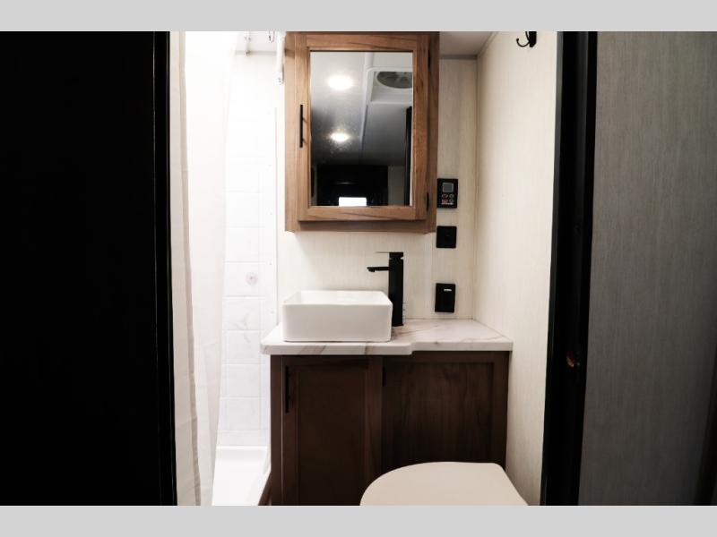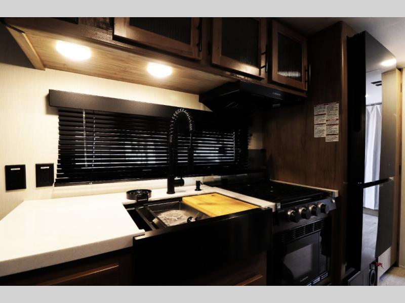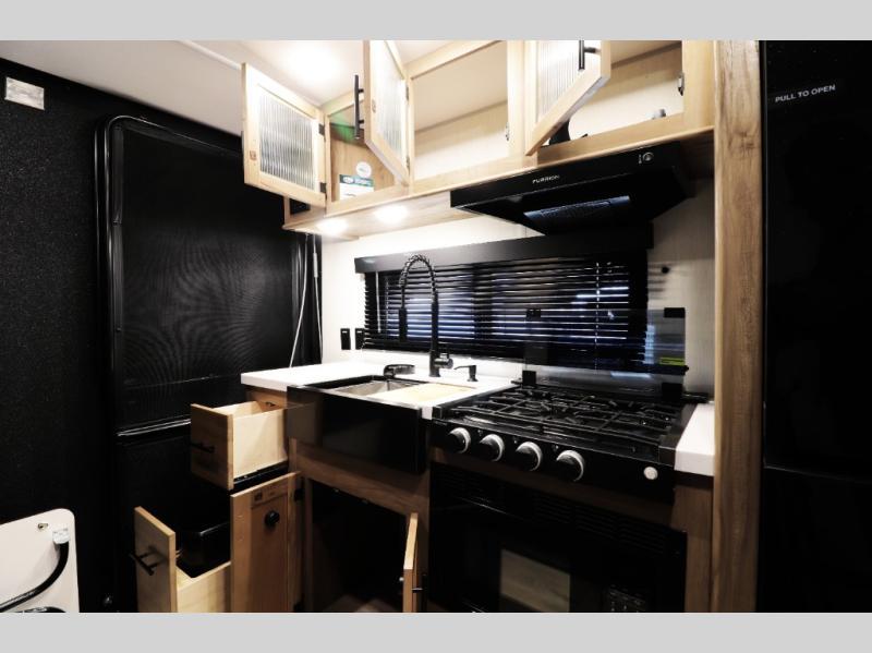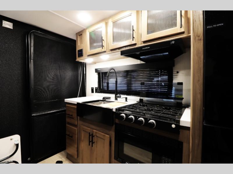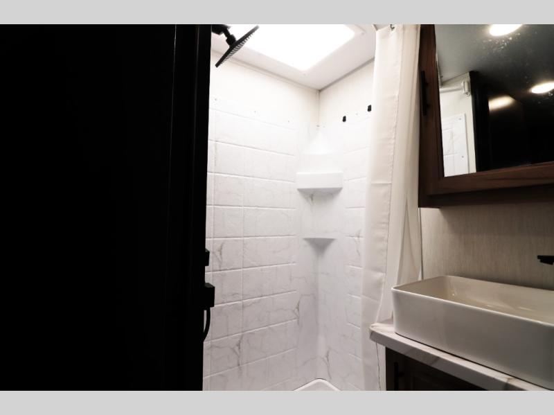 • Black Label Package with upgraded fiberglass exterior, frameless windows, premium solid-surface countertops, and upgraded interior design