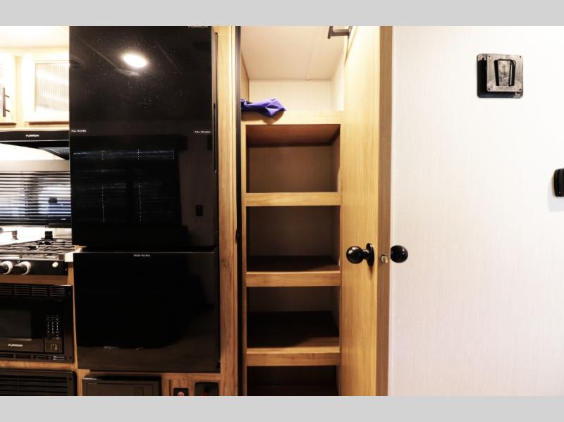 • 12V high-efficiency refrigerator for better cooling on and off hookups