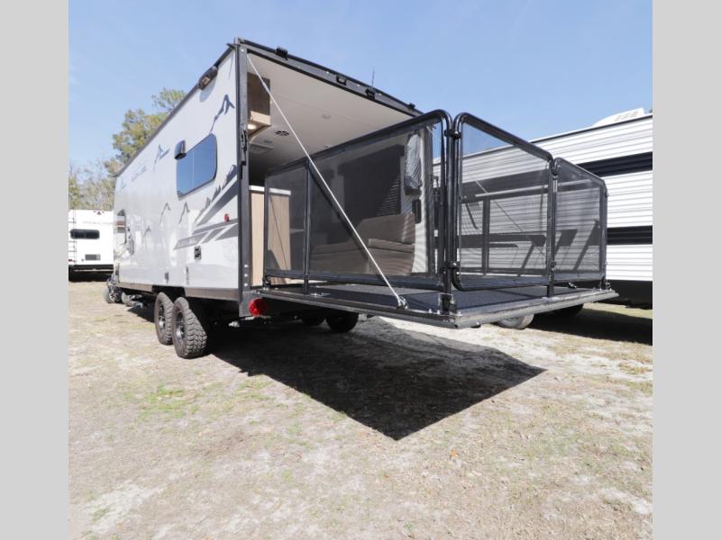• Rear ramp door converts to patio deck—perfect for relaxing, grilling, or enjoying scenic views