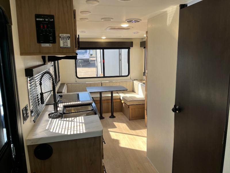 Whether it's a journey that will take you to new locations or a tried-and-true getaway to that favorite and memorable destination, the Forest River Cherokee Grey Wolf travel trailers and toy haulers are going to make the trip worth it every single time! You can travel in confidence with the premium wheel package, seamless roofing membrane with heat reflectivity, Power Gear frame technology with space-saver rail design, and Cherokee back-up camera system. The Cherokee Grey Wolf's interior is highly attractive with its stainless steel kitchen suite package and premium bedding ensemble and comforter. You will also find a black waste tank flush-out kit, an outside shower with hot and cold water, an armored underbelly tank enclosure, and an RV grill quick connect.