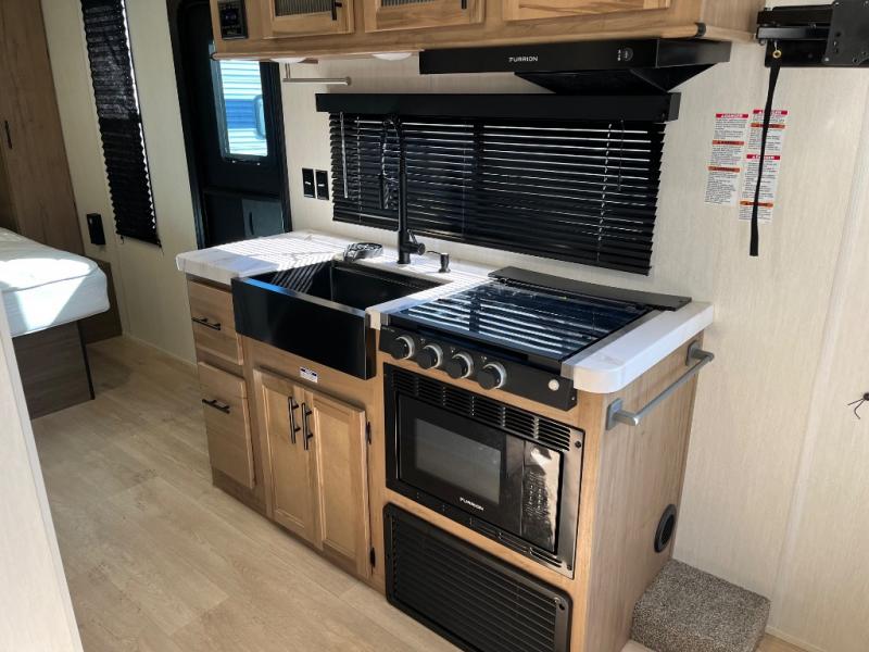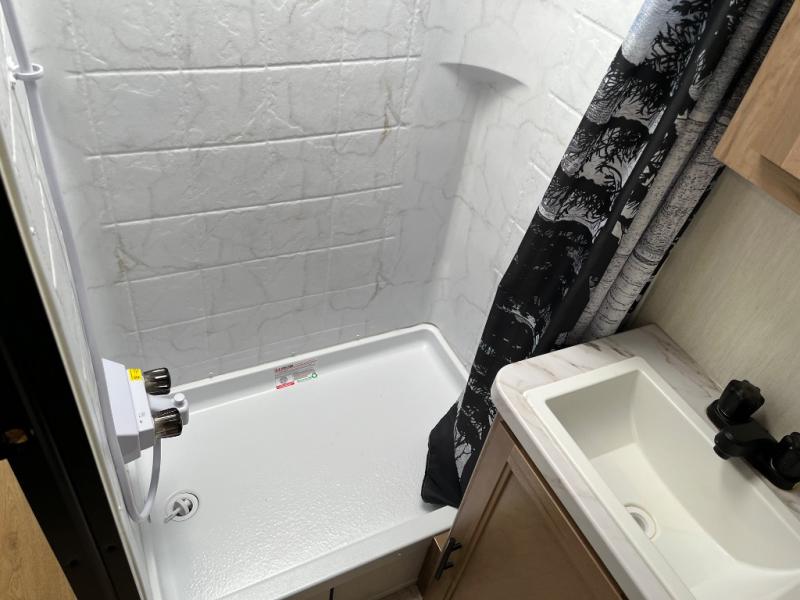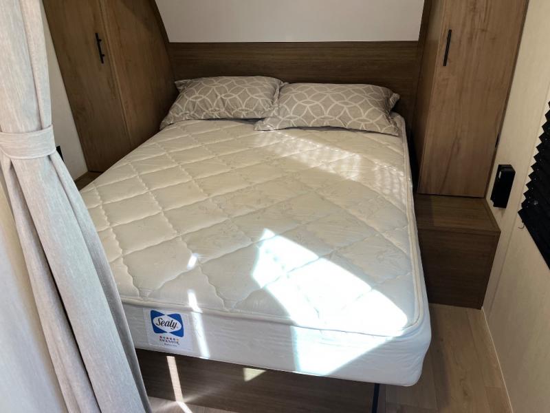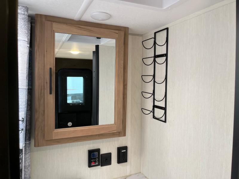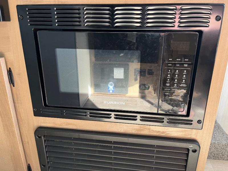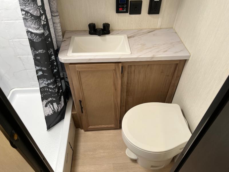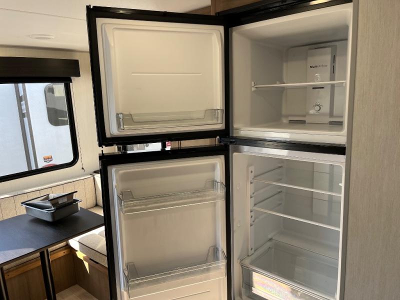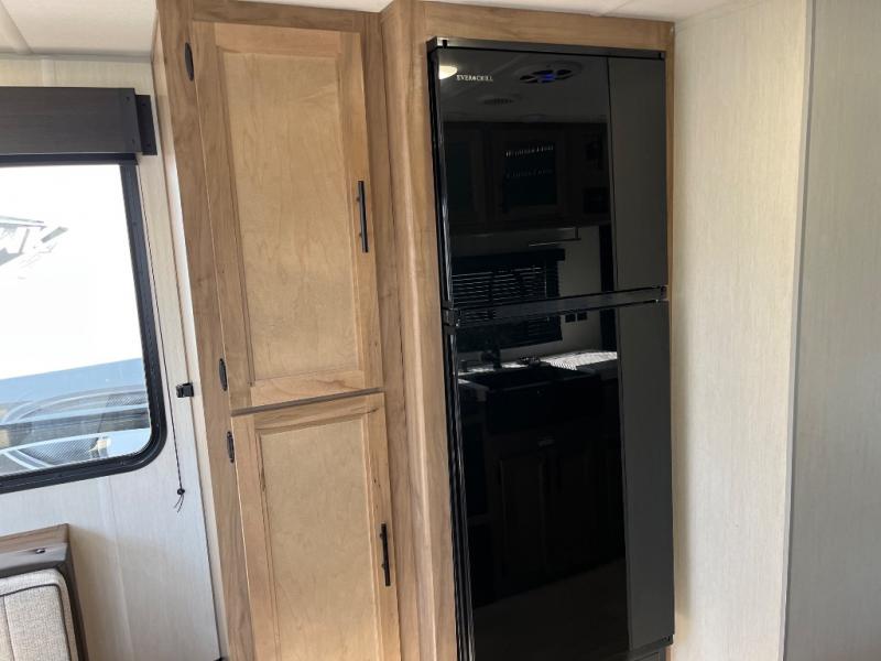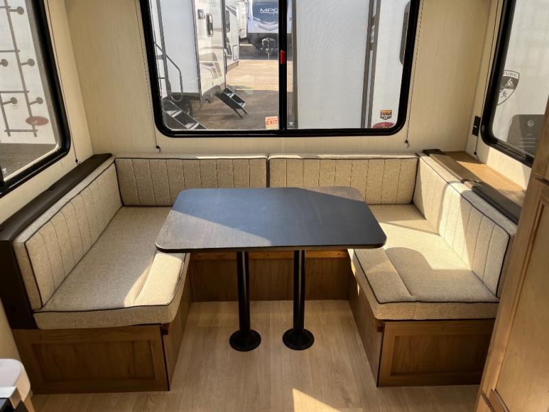Time spent at the campground in this well designed travel trailer will be time well spent! The front bedroom includes a walk-around RV king bed, dual bedroom wardrobes plus USB ports to charge your phone or laptop. You can whip up breakfast in the modern kitchen that includes an air fryer, then dine around the U-shaped dinette with a panoramic window. This area can also double as sleeping space for one to two guests as well! A pantry will let you stock up on snacks and the TV mount means you can bring along a television if you want to enjoy movie nights. There is also a full bath with a tub/shower where you can freshen up each day!