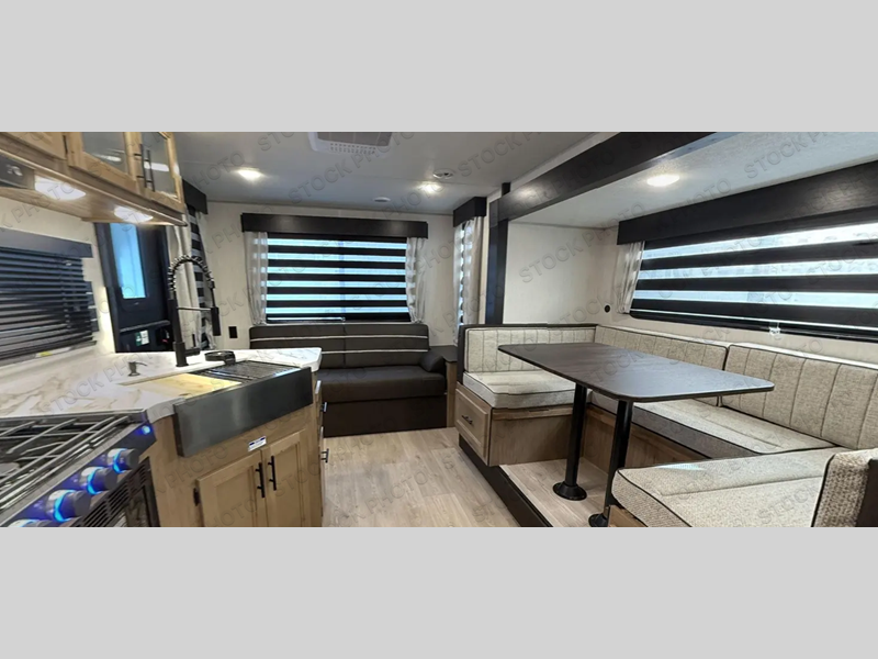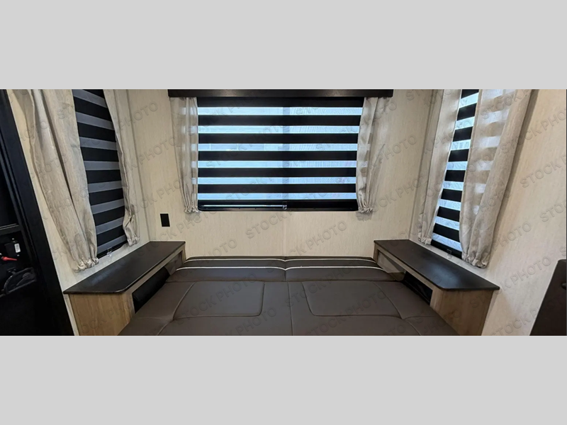 This Cherokee Grey Wolf travel trailer is perfect for your small family and will leave you planning your next outing before you are back from your current weekend away! You will find all of the comforts you need with plenty of livable space including a U-shaped dinette slide. There is also a sofa for more seating when company arrives, and there are end tables on either side to prevent spills. A spacious walk-through bath leads to a front private bedroom where you will enjoy a great night's rest on a comfortable RV king bed. You will find ample storage for clothing in the wardrobes that are above handy nightstands for your personal things. There are even lights mounted above the bed on each side which makes it easy to read a couple of chapters before drifting off to sleep.