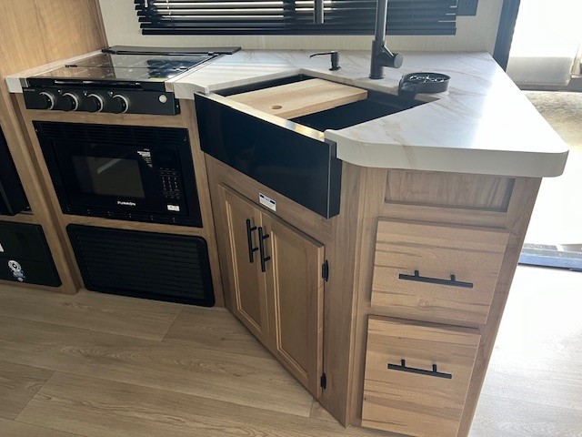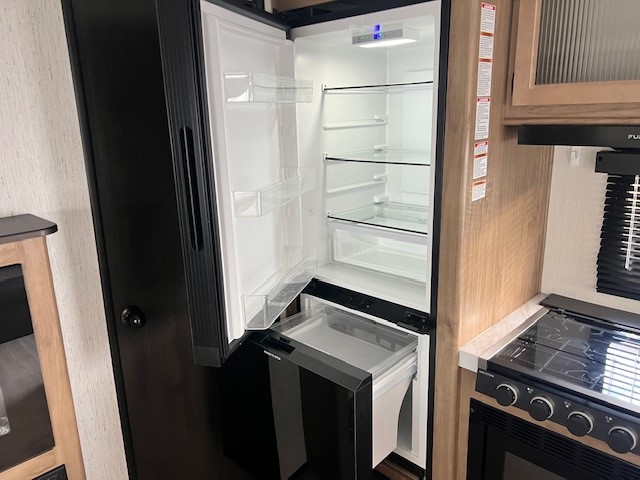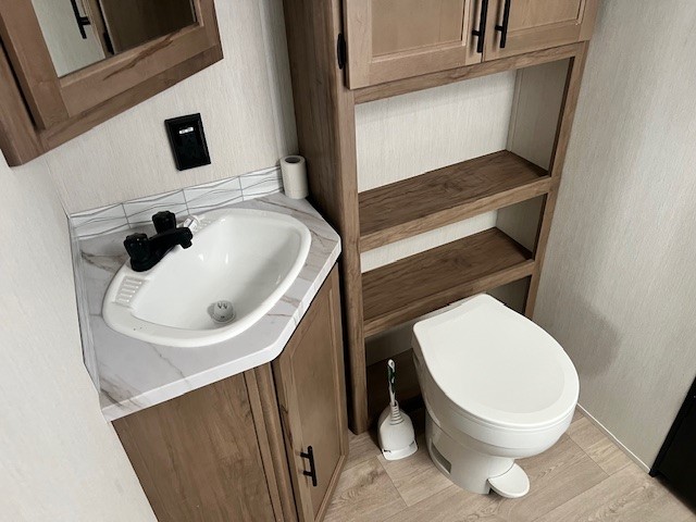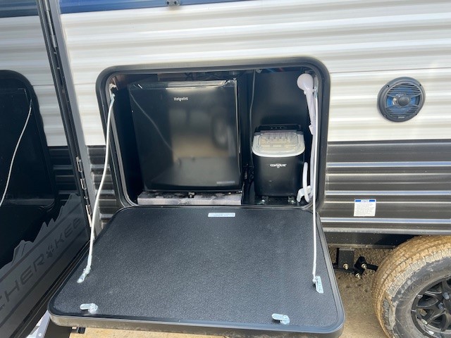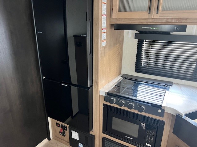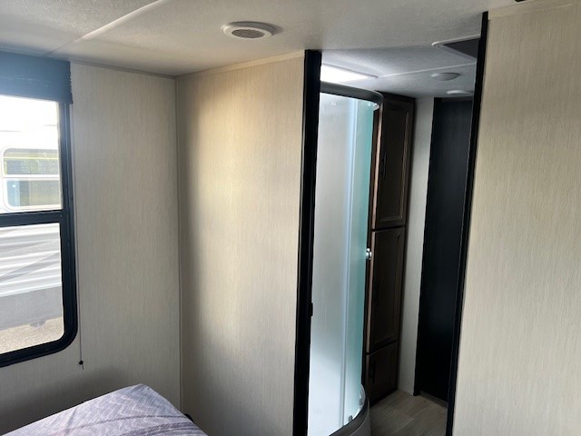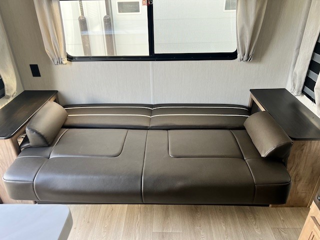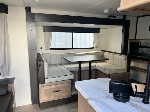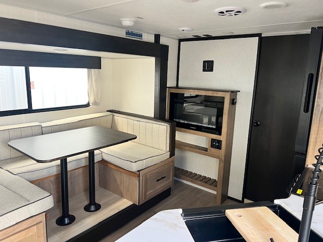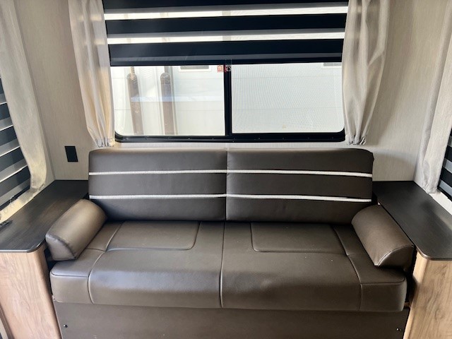 This Cherokee Grey Wolf travel trailer is perfect for your small family and will leave you planning your next outing before you are back from your current weekend away! You will find all of the comforts you need with plenty of livable space including a U-shaped dinette slide. There is also a sofa for more seating when company arrives, and there are end tables on either side to prevent spills. A spacious walk-through bath leads to a front private bedroom where you will enjoy a great night's rest on a comfortable RV king bed. You will find ample storage for clothing in the wardrobes that are above handy nightstands for your personal things. There are even lights mounted above the bed on each side which makes it easy to read a couple of chapters before drifting off to sleep.