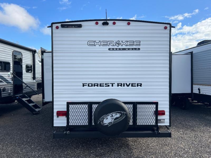 Whether it's a journey that will take you to new locations or a tried-and-true getaway to that favorite and memorable destination, the Forest River Cherokee Grey Wolf travel trailers and toy haulers are going to make the trip worth it every single time! You can travel in confidence with the premium wheel package, seamless roofing membrane with heat reflectivity, Power Gear frame technology with space-saver rail design, and Cherokee back-up camera system. The Cherokee Grey Wolf's interior is highly attractive with its stainless steel kitchen suite package and premium bedding ensemble and comforter. You will also find a black waste tank flush-out kit, an outside shower with hot and cold water, an armored underbelly tank enclosure, and an RV grill quick connect.