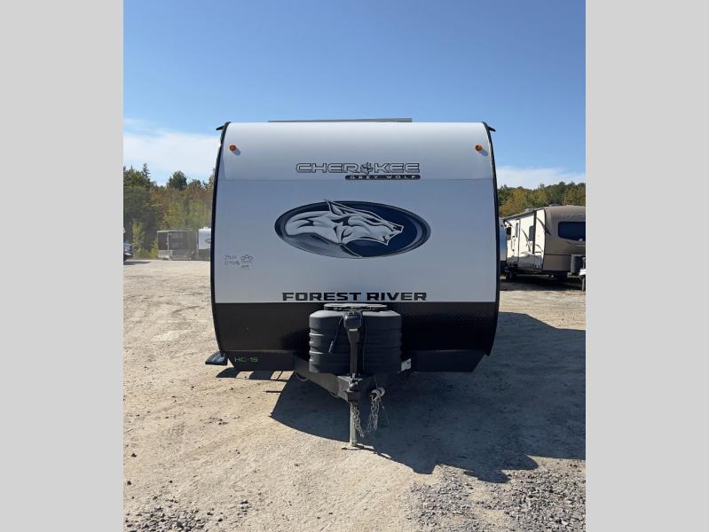 Whether it's a journey that will take you to new locations or a tried-and-true getaway to that favorite and memorable destination, the Forest River Cherokee Grey Wolf travel trailers and toy haulers are going to make the trip worth it every single time! You can travel in confidence with the premium wheel package, seamless roofing membrane with heat reflectivity, Power Gear frame technology with space-saver rail design, and Cherokee back-up camera system. The Cherokee Grey Wolf's interior is highly attractive with its stainless steel kitchen suite package and premium bedding ensemble and comforter. You will also find a black waste tank flush-out kit, an outside shower with hot and cold water, an armored underbelly tank enclosure, and an RV grill quick connect.