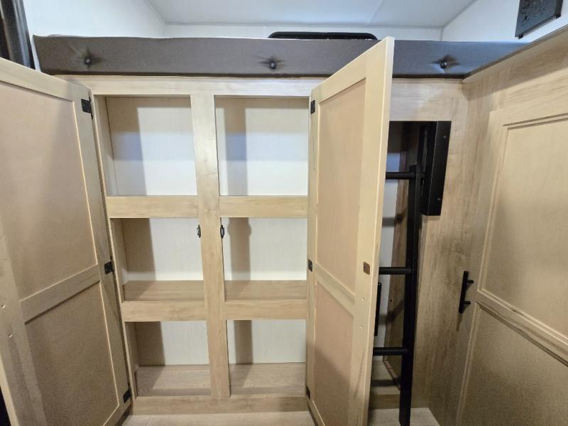 Your larger family will love spending weekends away with this Cherokee Grey Wolf travel trailer as their home away from home. This model offers lots of sleeping space with three bunk beds in the rear private bunkhouse. In the front, there is a master suite with wardrobes and nightstands on either side of the RV king bed, and it even has private access to the dual-entry bath. The two entry doors will make accessing the trailer easy for everyone, and you will appreciate the abundant storage throughout this unit including large overhead cabinets, a spacious pantry, and numerous outside storage compartments for all of your outdoor gear. There's even an outside bar & grill!