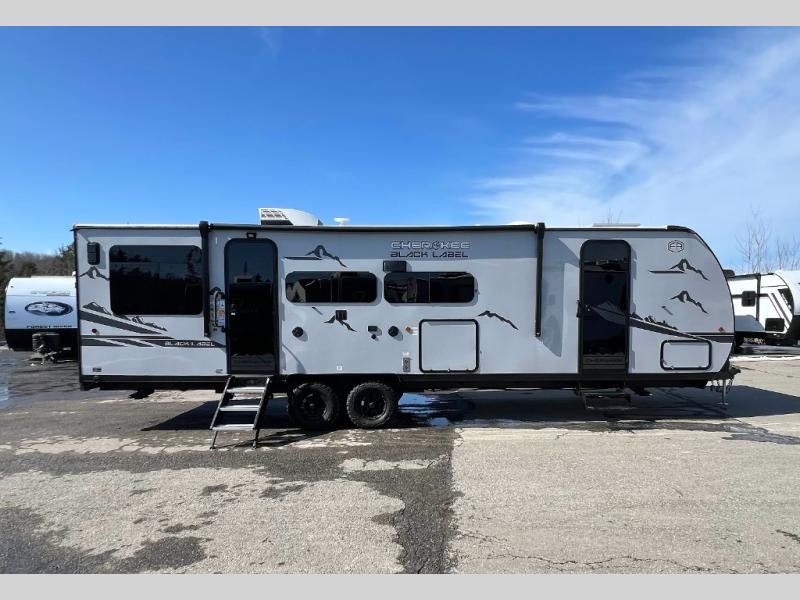 Whether it's a journey that will take you to new locations or a tried-and-true getaway to that favorite and memorable destination, the Forest River Cherokee Grey Wolf Black Label travel trailers and toy haulers are going to make the trip worth it every single time! The Black Label Package includes Thermo-Foil Arctic insulation, hung fiberglass gel coat sided walls, and frameless window package. There are also upgraded solid surface countertops and reading lights, plus designer cushion fabrics to make you feel right at home. You can travel in confidence with the premium wheel package, seamless roofing membrane with heat reflectivity, Power Gear frame technology with space-saver rail design, and Cherokee back-up camera system.