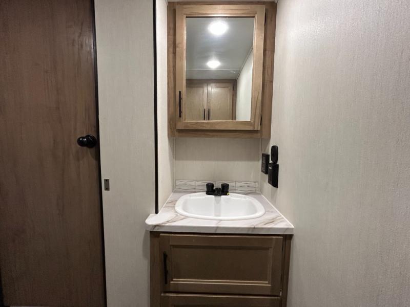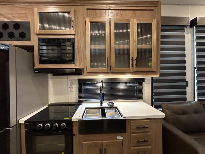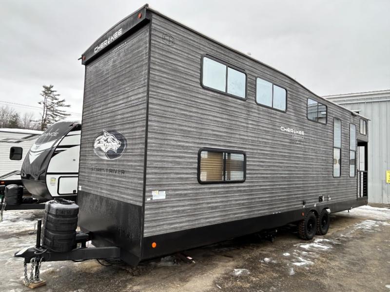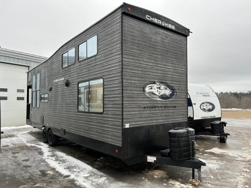 Enjoy comforts of home wherever you decide to roam in a Cherokee Timberwolf destination trailer by Forest River. The seamless roofing membrane with heat reflectivity provide a durable foundation to your RV. You will also appreciate the exclusive solar thermo controlled reflective tinted safety glass windows and an on-demand tankless water heater to make extended stays easier than ever. Inside, the night shades will provide your crew with privacy. There are also seamless countertops, along with a premium bedding ensemble and comforter, USB charging stations, a supersized central A/C unit, and many more comforts!