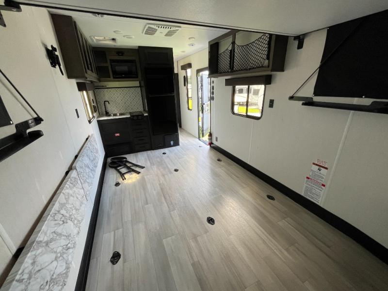 With any Cherokee Wolf Pack toy hauler by Forest River, you will enjoy never-ending adventures. You'll appreciate the 8' 6" wide body design so you can bring along toys and gear, and there is a high-output LED loading light for added convenience when you're getting back to camp late. There is real wood cabinet doors and drawers inside and LED lights to keep your space well lit. These toy haulers are built with tongue and groove plywood main floors and a forced air heated underbelly and enclosed holding tanks that will help you extend your camping season.