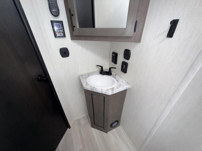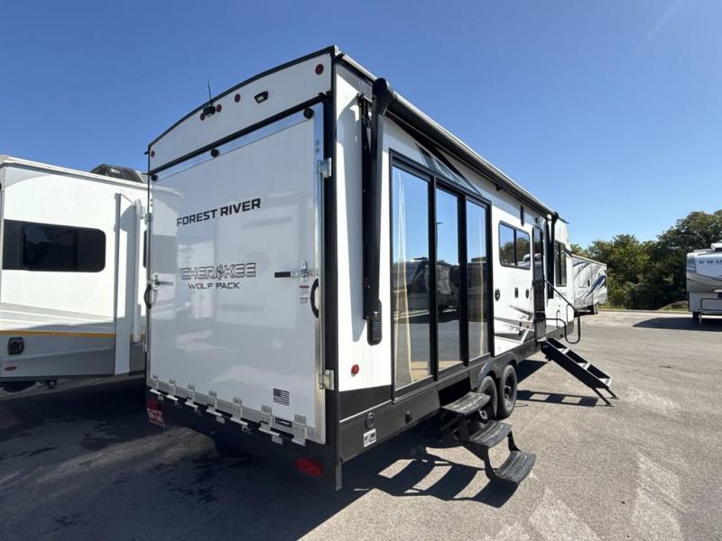 With any Cherokee Wolf Pack toy hauler by Forest River, you will enjoy never-ending adventures. You'll appreciate the 8' 6" wide body design so you can bring along toys and gear, and there is 4-camera prep with a rear camera if you want the option to make parking easier than ever. There is real wood cabinet doors and drawers inside and LED lights to keep your space well lit. These toy haulers are built with tongue and groove plywood main floors and a forced air heated underbelly and enclosed holding tanks that will help you extend your camping season.