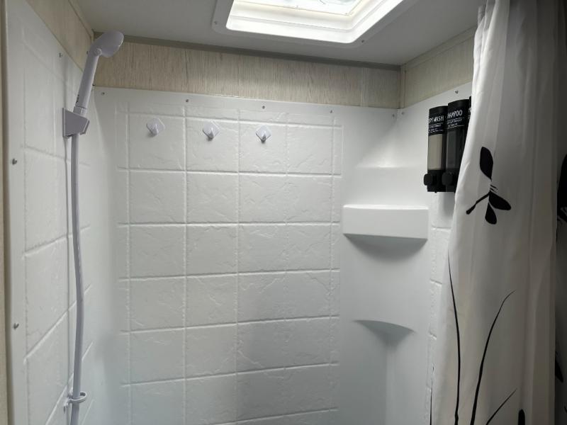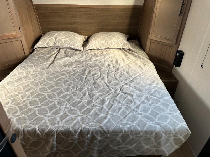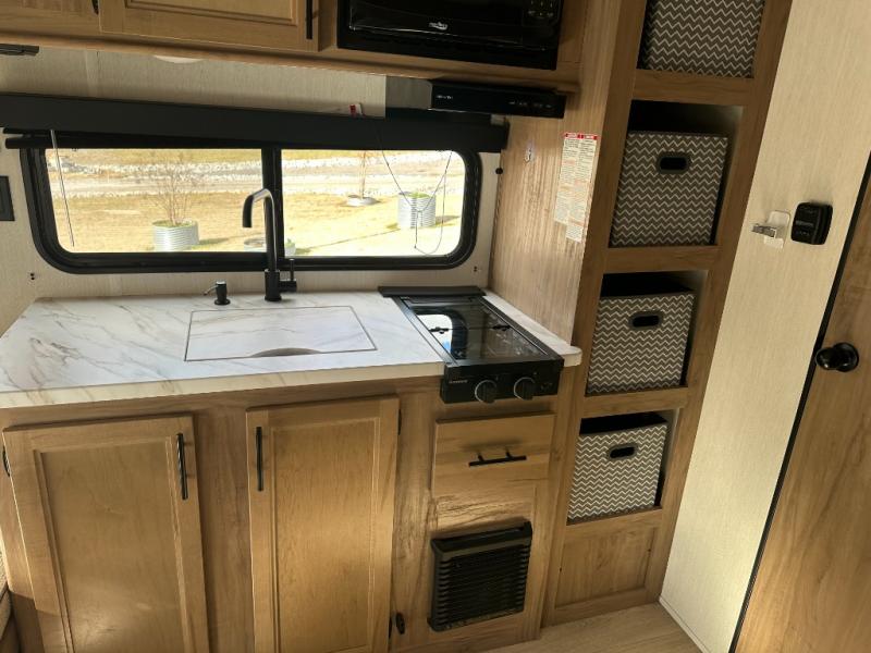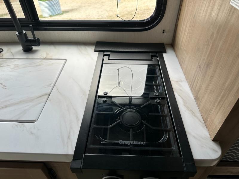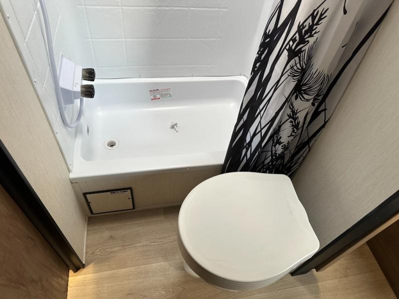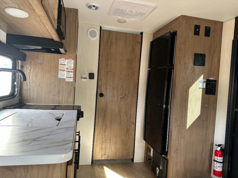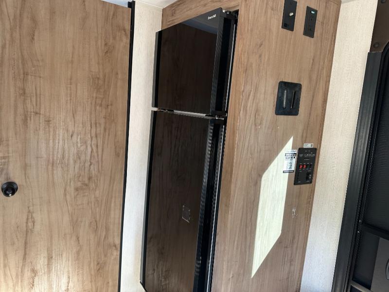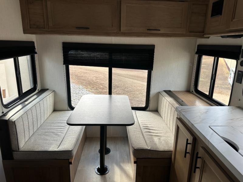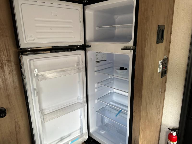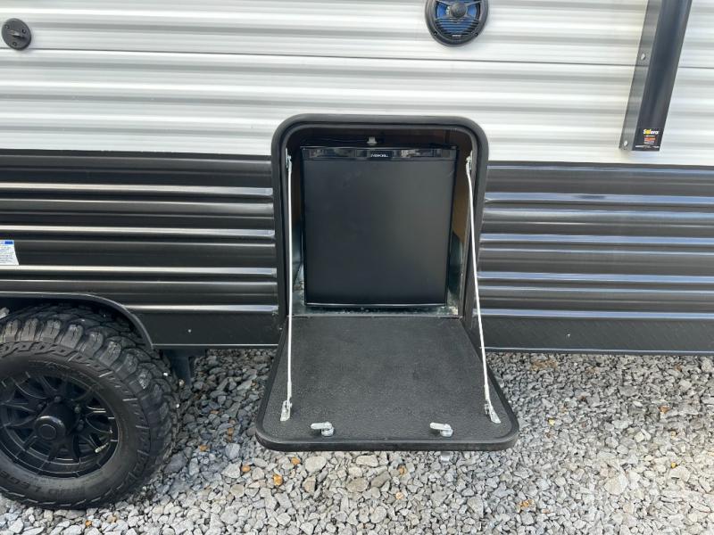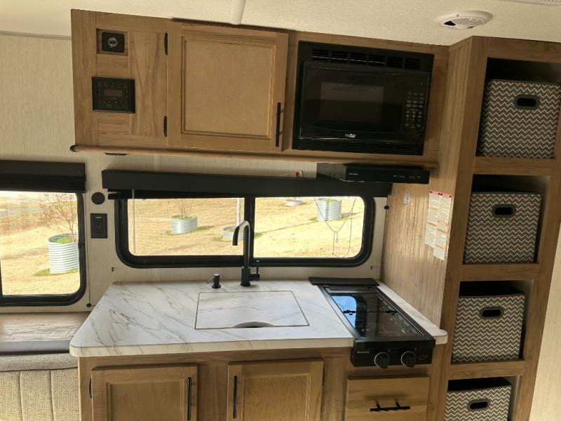 Convenient camping is found with this lightweight travel trailer! Once you arrive at your destination, put out the 15' power awning, then make lunch on the exterior mini kitchen. Inside, you can dine at the booth dinette, freshen up in the tub/shower, and sleep soundly on the queen bed in the master bedroom. And you're sure to find plenty of storage spaces both inside and outside, including a rear storage rack!