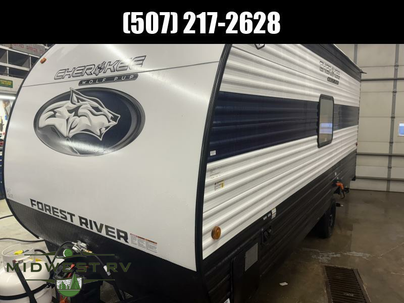 Each one of these Forest River Cherokee Wolf Pup travel trailers are lightweight and easy to tow! They are fully self contained with ample tank capacities, an abundance of storage space, and filled with at home amenities. The aerodynamic smooth radius front profile, the Power Gear frame technology, and the space saver rail design make them easier to maneuver. You will also appreciate the seamless roofing membrane with heat reflectivity to keep the sun from making your unit a hot box. The tongue and groove plywood flooring will hold up for years of fun and the USB charging stations help to keep your electronics at 100% while you're away. Come find the best model for you today!